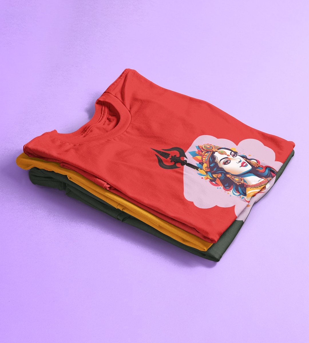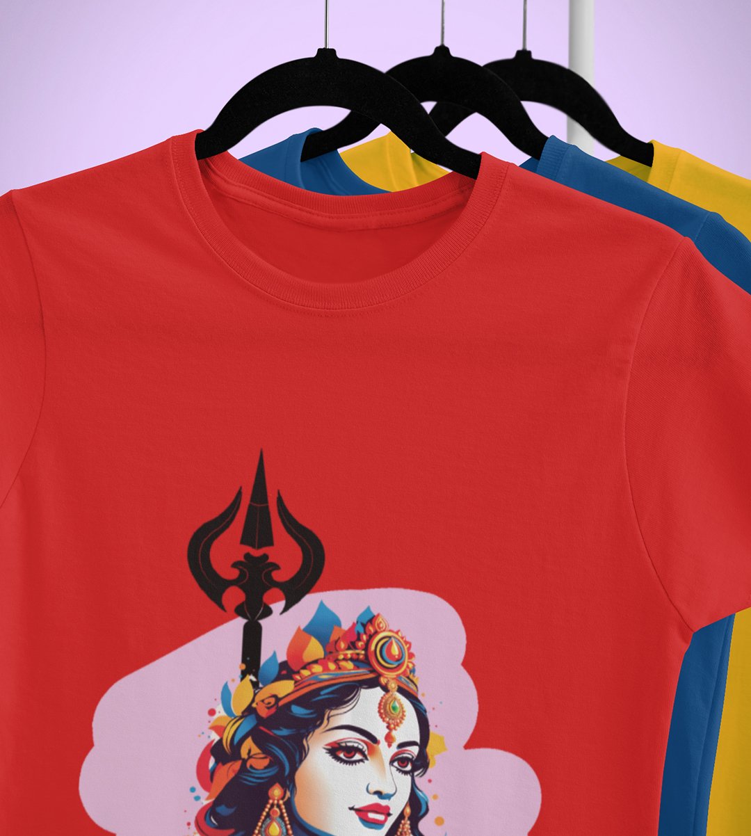 Navratri is a very auspicious festival for hindus. It takes place at the beginning of October and sometimes September. Enjoy the 9 days of festivities with full zeal and make yourself submerged in the love of Maa Durga. Navratri is also known as Durga Puja. And with this Tees, you can shine like a star during this festive season with our navratri themed cotton half sleeved Tshirts. You can pair our t-shirts with trousers and denim of your choice and make it a weekday smart casual or weekend wear. This is durable. This tshirt is smooth and soft which makes you comfortable to wear during all seasons. The printing in it is durable and odourless. It has five sizes, S,M,L,XL,XXL. The Tshirt colour is intact even after repeated washes. It can be kept in your wardrobe and hangers. Please avoid washing mashine to clean this Tee, it may affect the print. Hand wash only. We have brought you many navratri related designs printed on our different colour Tshirts to choose from. Grab it now.