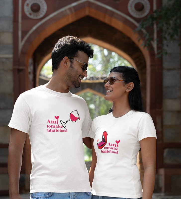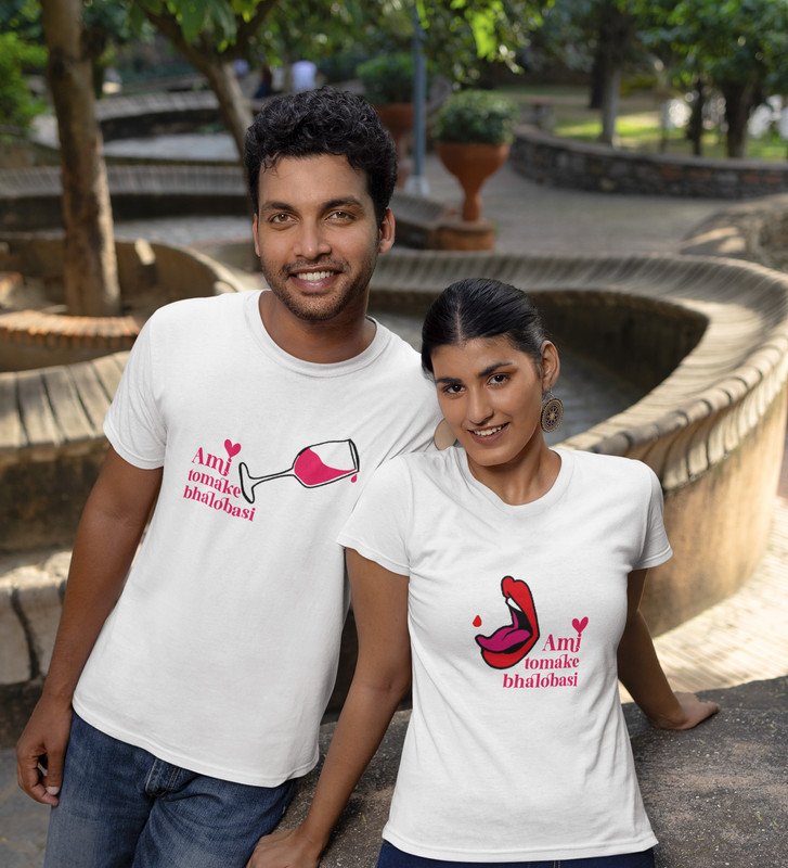 Ami Tomake Bhalobasi Cute Printed Couple (White) T-shirts