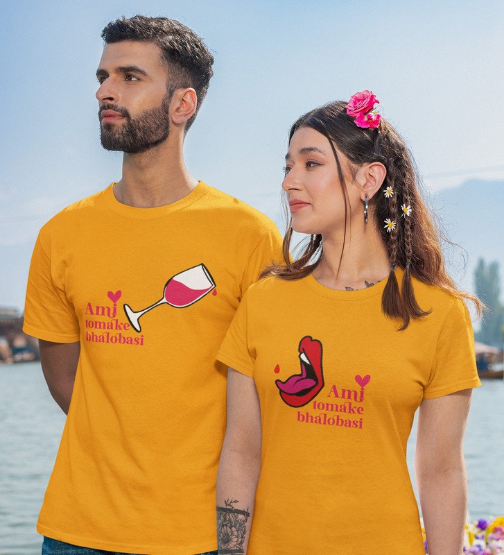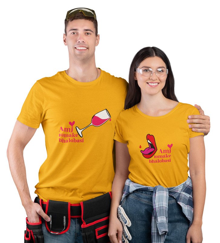 Ami Tomake Bhalobasi Cute Printed Couple (Yellow) T-shirts