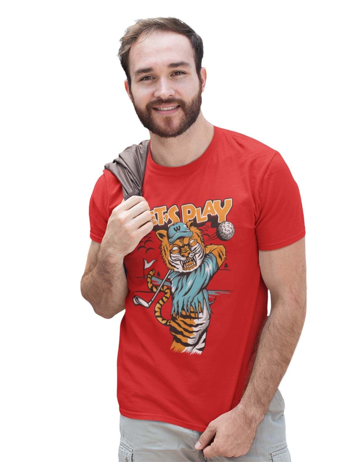Let's Play Red Round Neck Cotton Half Sleeved T-Shirt with Printed Graphics