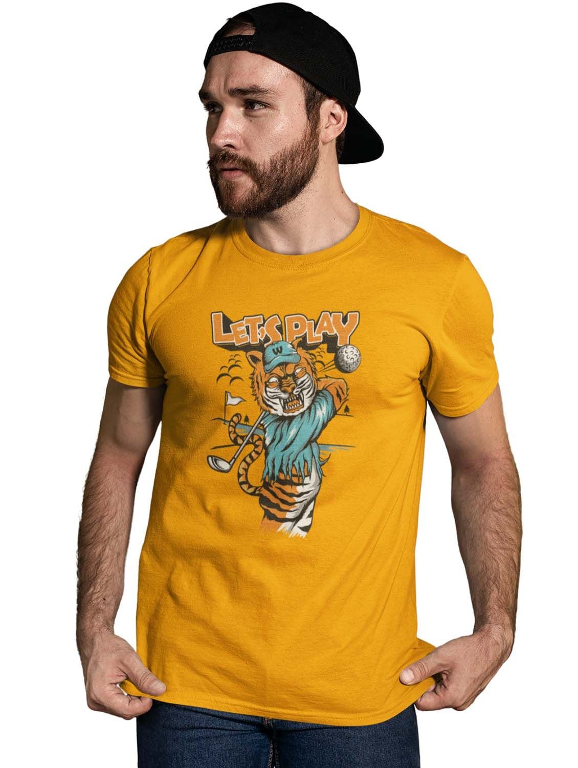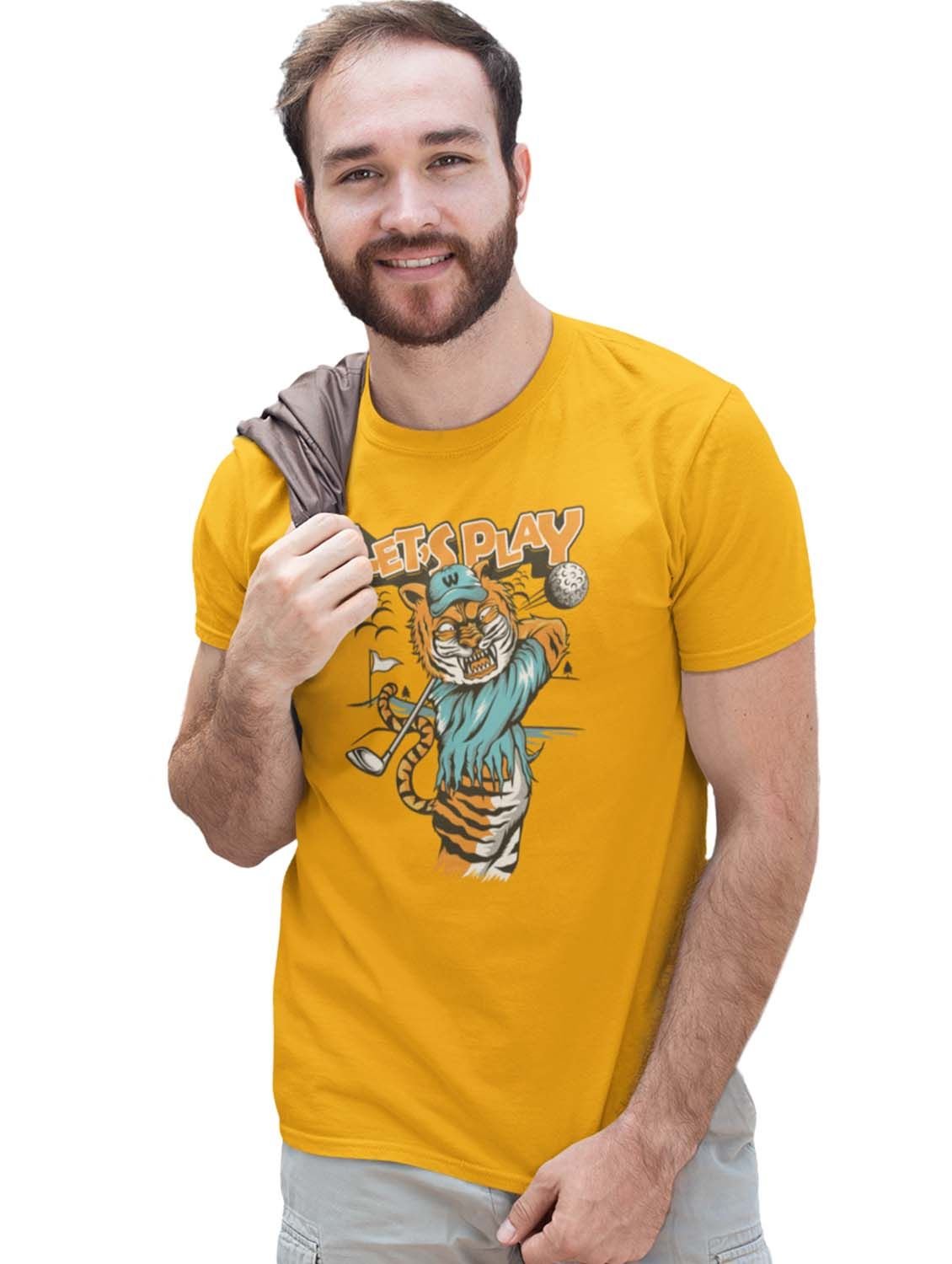 Let's Play Yellow Round Neck Cotton Half Sleeved T-Shirt with Printed Graphics