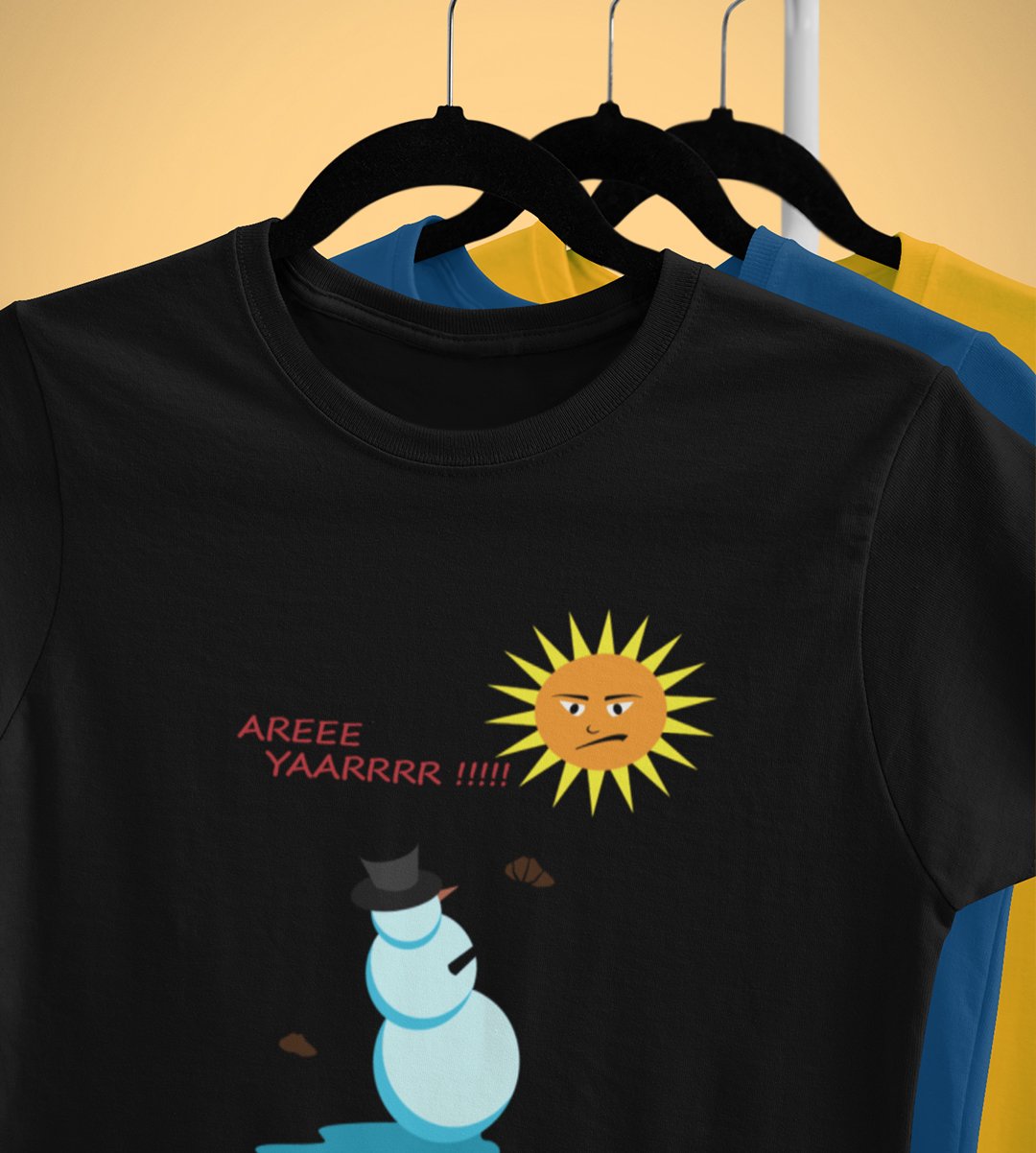 Angry Snowman : Unique Printed T-shirt (Black) Best Gift For Boys Girls