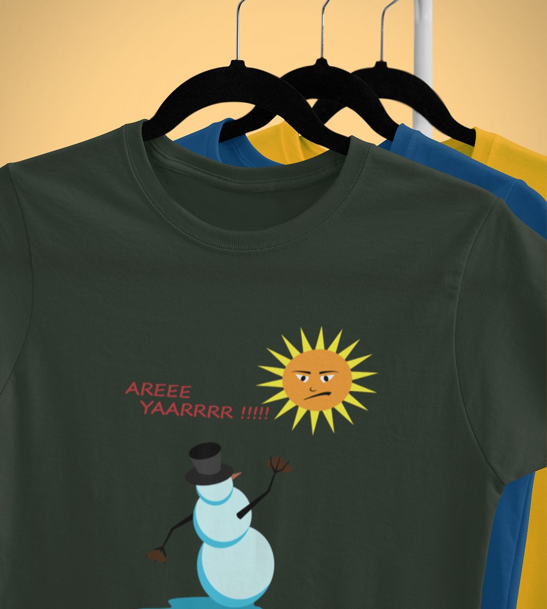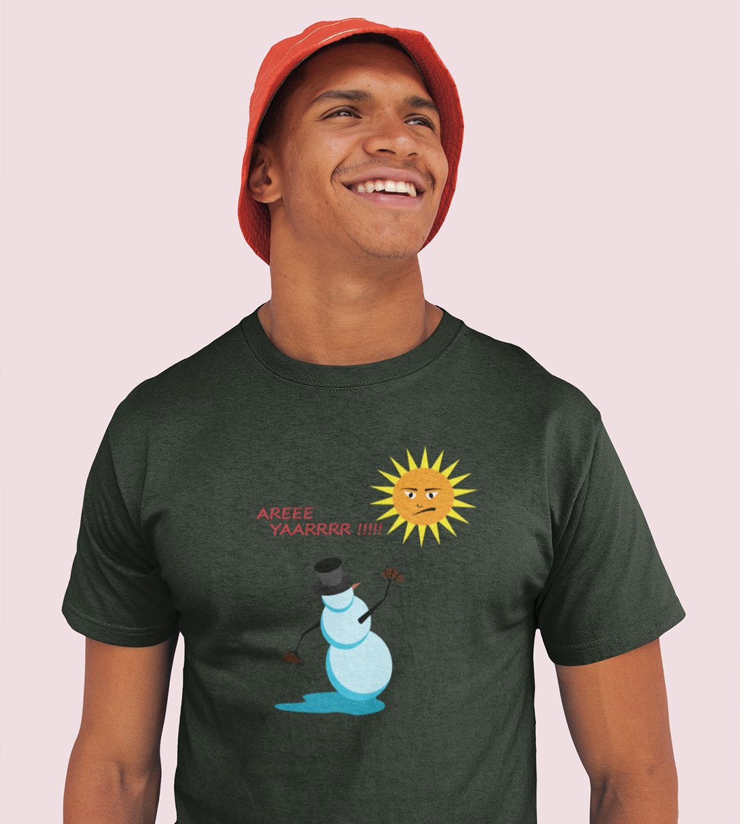 Angry Snowman : Unique Printed T-shirt (Green) Best Gift For Boys Girls