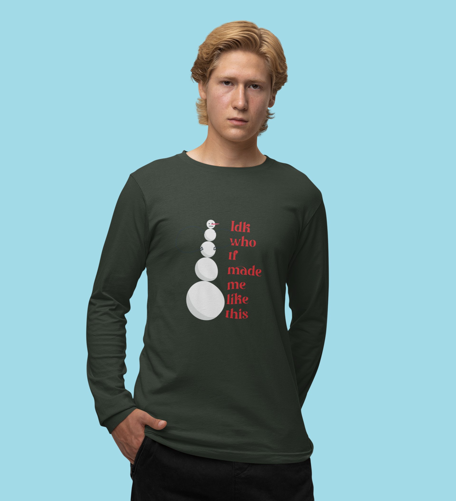 Angry Tall Snowman: Funny DesignerFull Sleeve T-shirt Green Most Liked Gift For Secret Santa