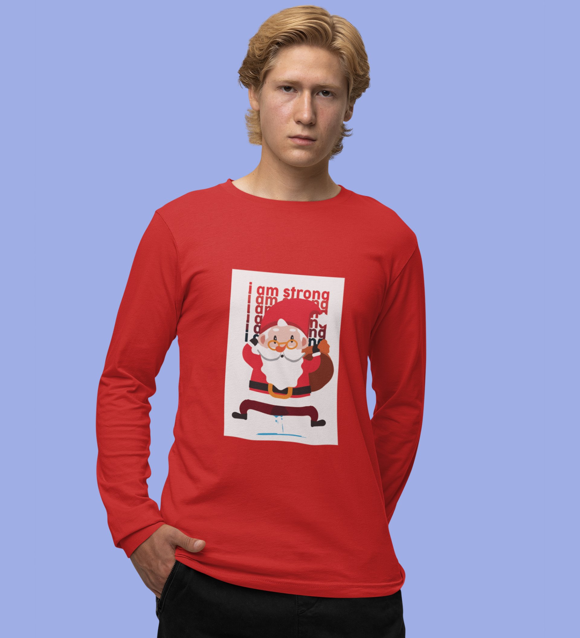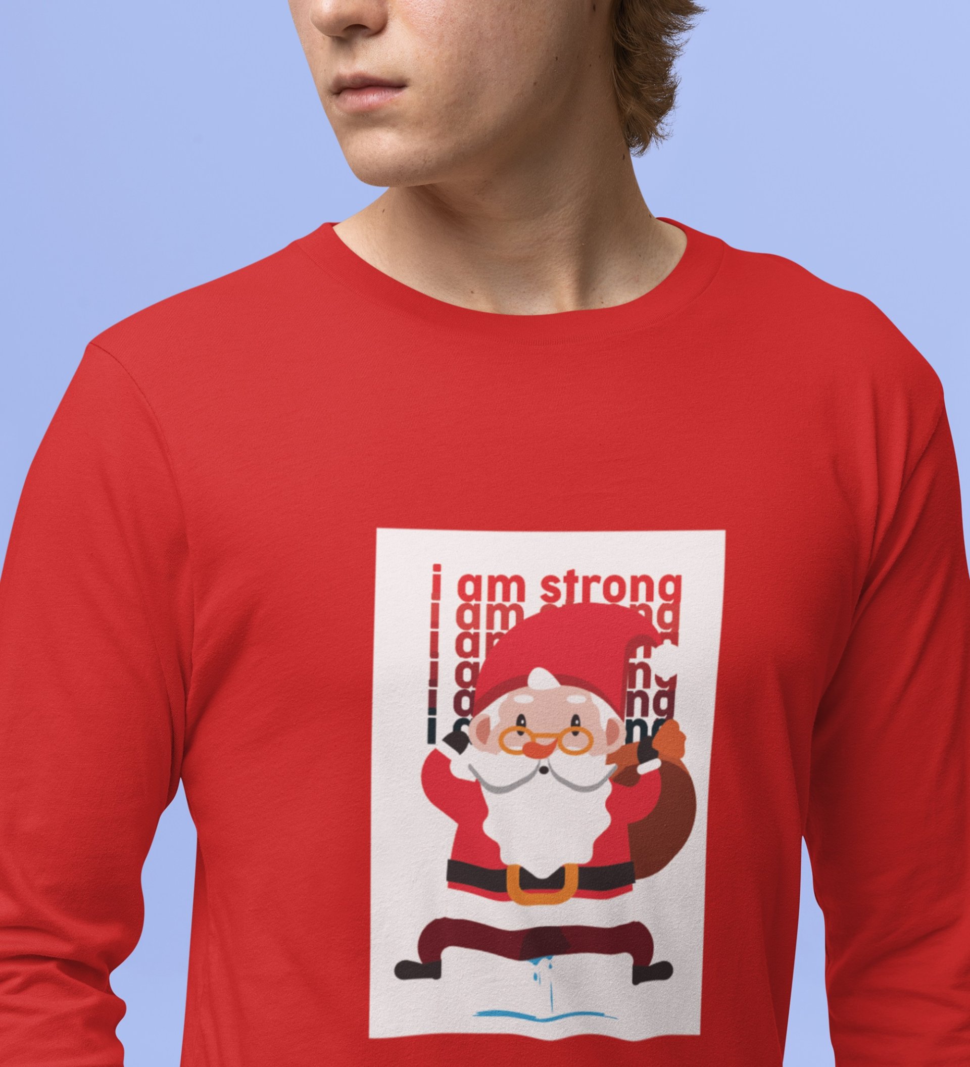 Angry Young Santa: Cute Santa DesignedFull Sleeve T-shirt Red Unique Gift For Secret Santa