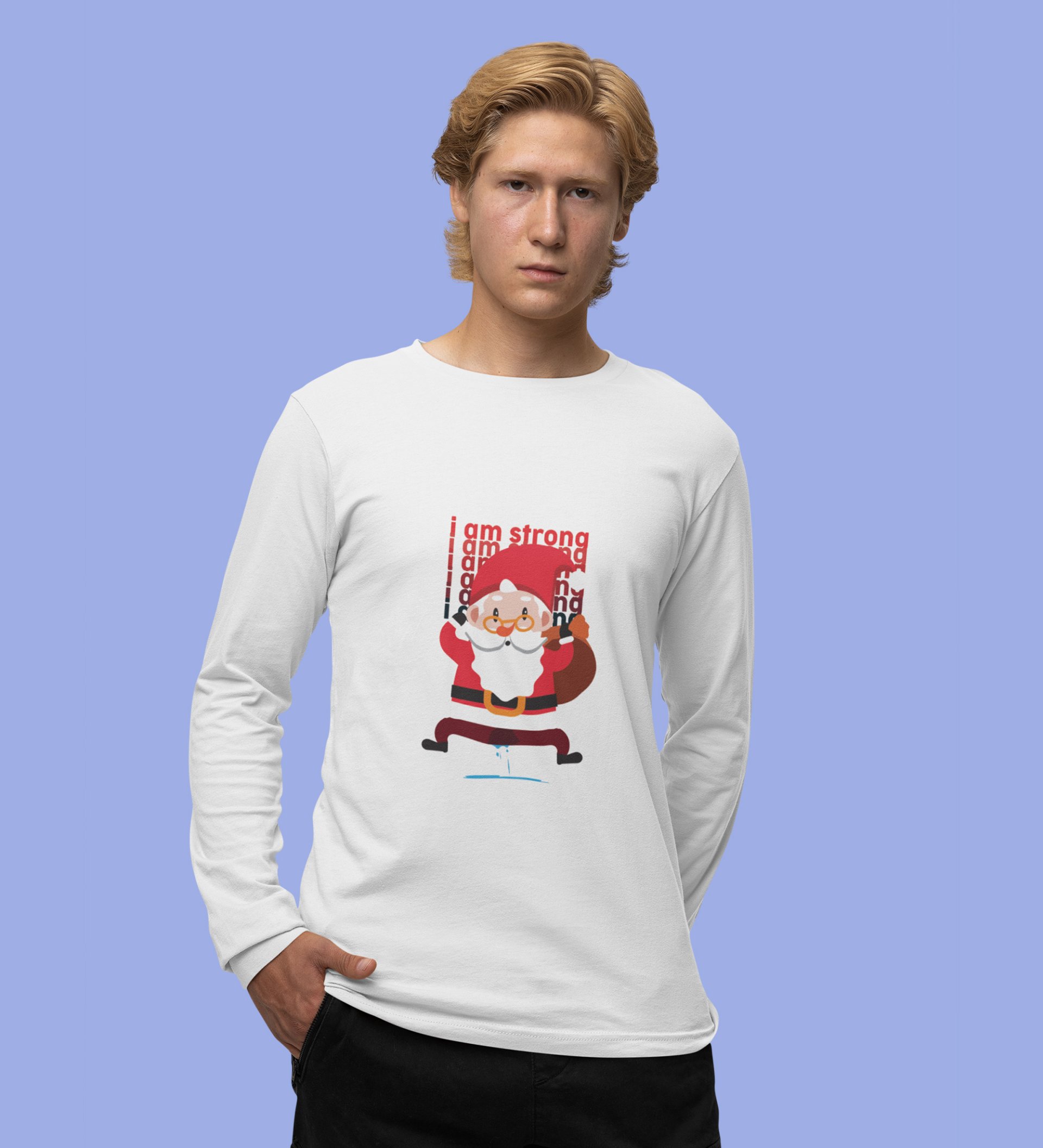 Angry Young Santa: Cute Santa DesignedFull Sleeve T-shirt White Unique Gift For Secret Santa