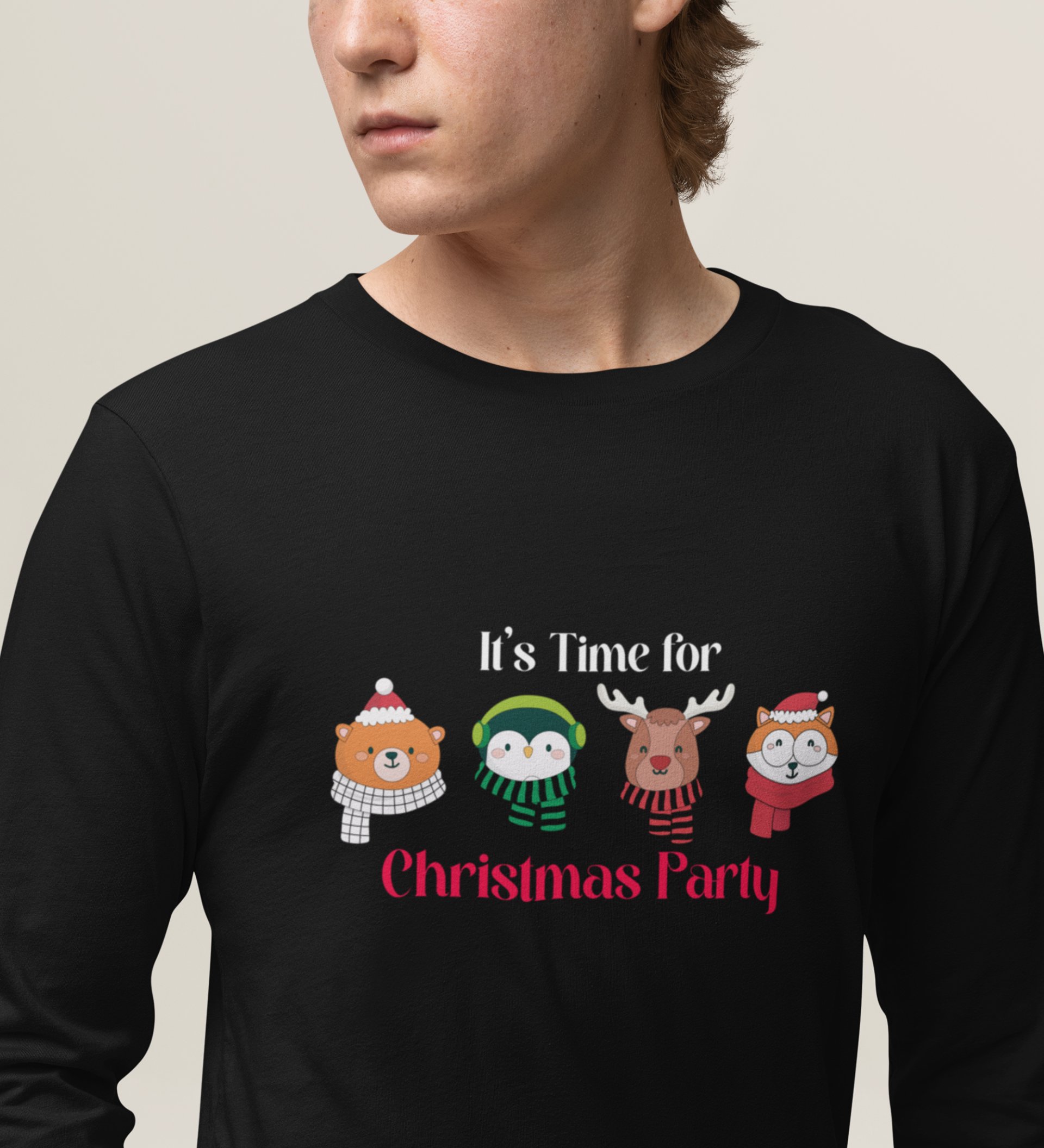 Animal Christmas Party: Unique DesignerFull Sleeve T-shirt Black Best Gift For Boys Girls