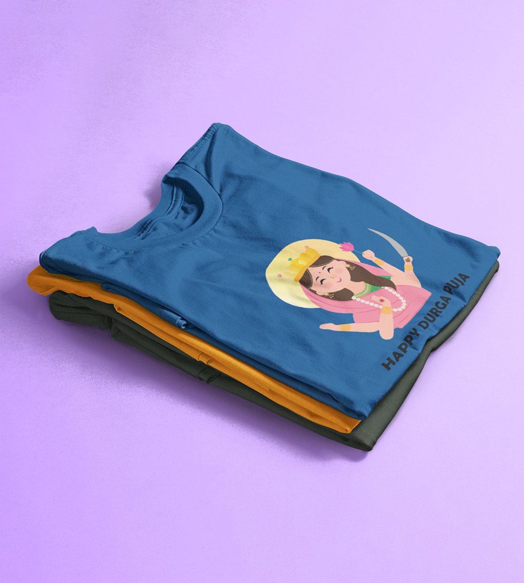 Navratri is a very auspicious festival for hindus. It takes place at the beginning of October and sometimes September. Enjoy the 9 days of festivities with full zeal and make yourself submerged in the love of Maa Durga. Navratri is also known as Durga Puja. And with this Tees, you can shine like a star during this festive season with our navratri themed cotton half sleeved Tshirts. You can pair our t-shirts with trousers and denim of your choice and make it a weekday smart casual or weekend wear. This is durable. This tshirt is smooth and soft which makes you comfortable to wear during all seasons. The printing in it is durable and odourless. It has five sizes, S,M,L,XL,XXL. The Tshirt colour is intact even after repeated washes. It can be kept in your wardrobe and hangers. Please avoid washing mashine to clean this Tee, it may affect the print. Hand wash only. We have brought you many navratri related designs printed on our different colour Tshirts to choose from. Grab it now.