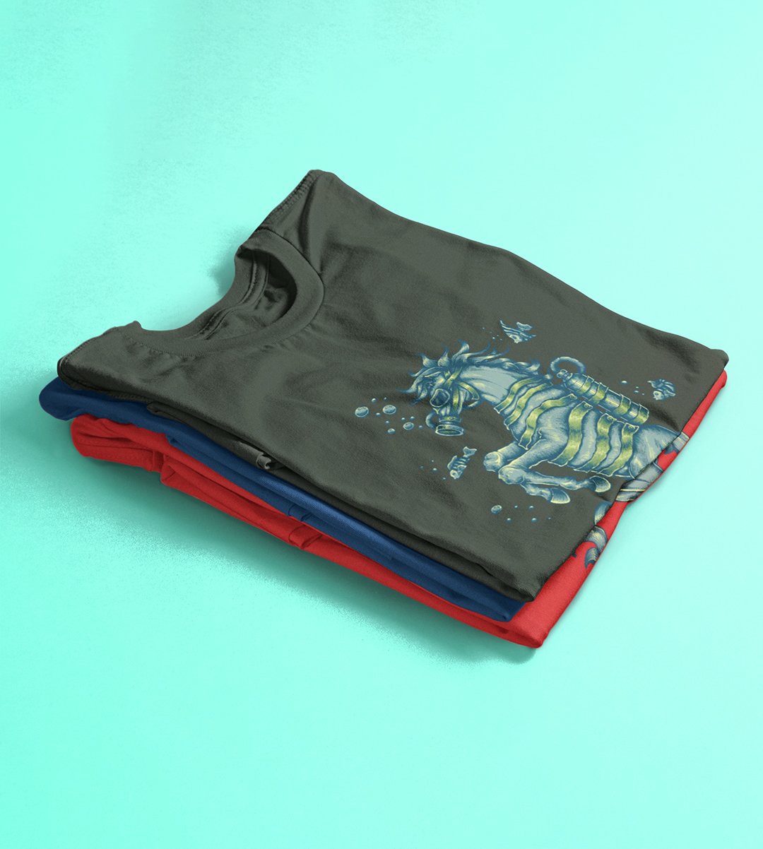 Animated Sea Horse -round crew neck cotton tshirts for men
