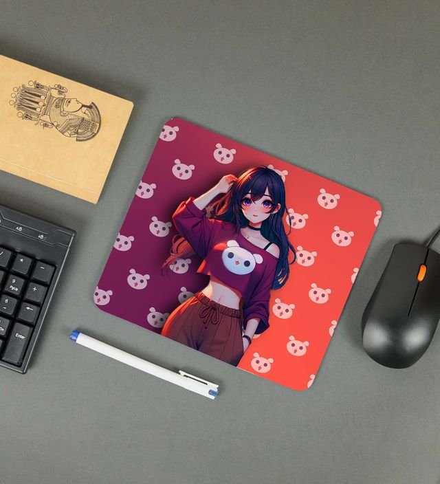 Anime Girl With Fun Icon Pattern Art Printed Mousepad