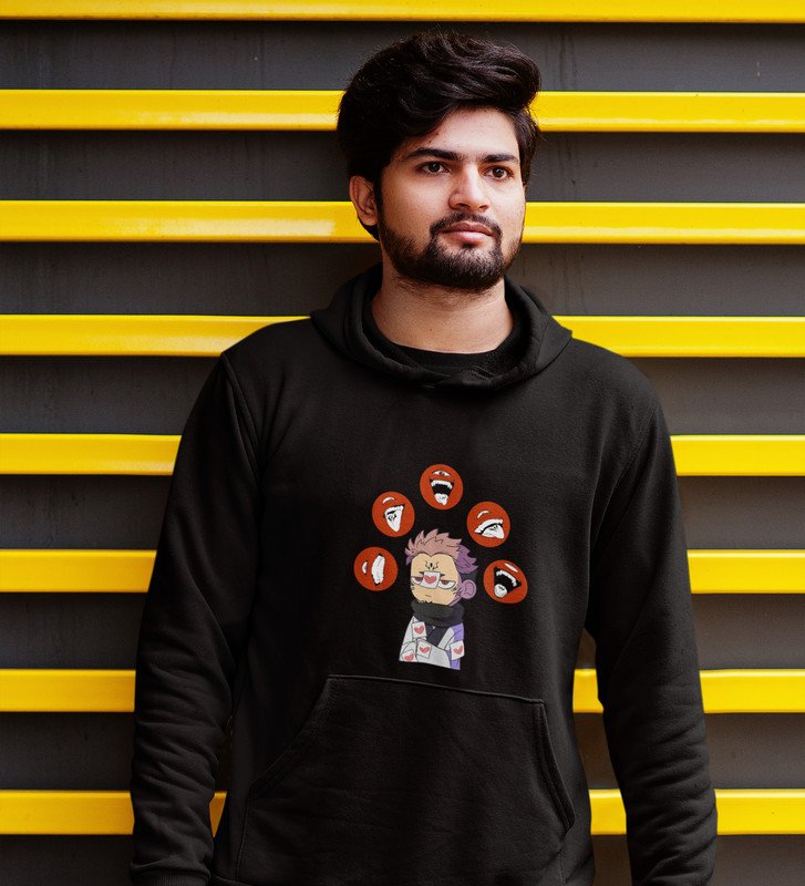 Anime Printed Cotton Black Hoodies For Mens and Boys
