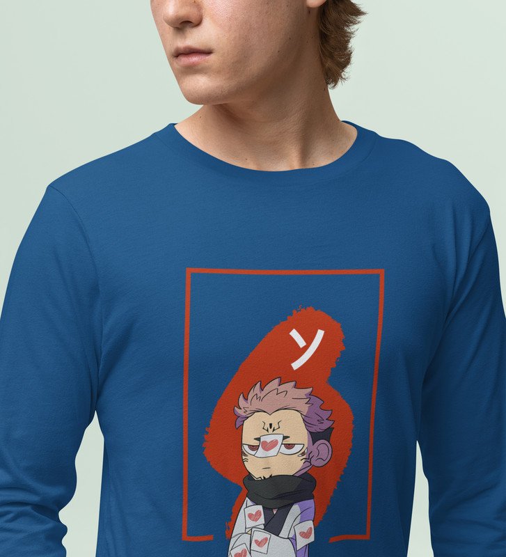 Anime Printed Cotton Blue Full Sleeves Tshirt For Mens and Boys