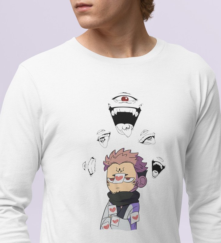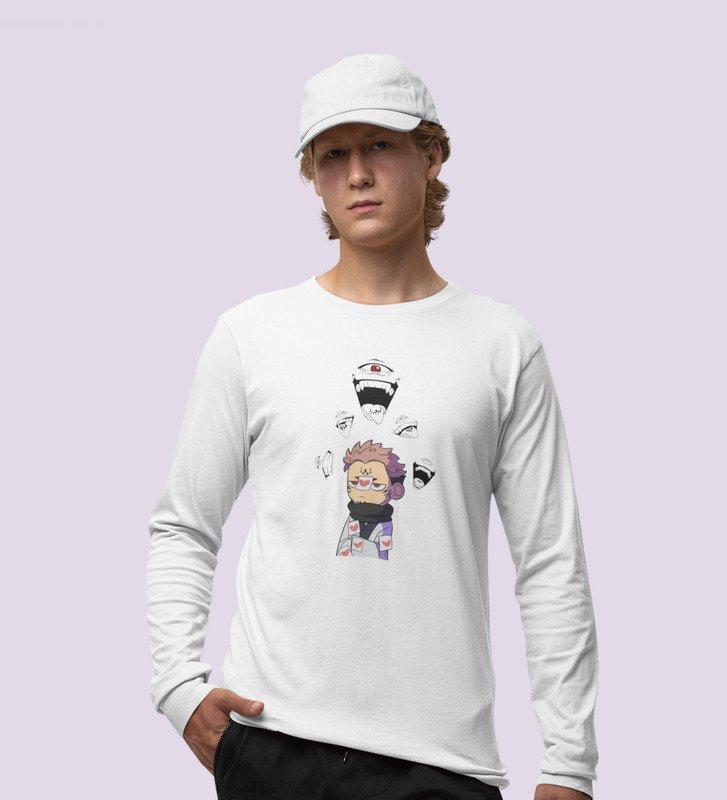 Anime Printed Cotton White Full Sleeves Tshirt For Mens and Boys
