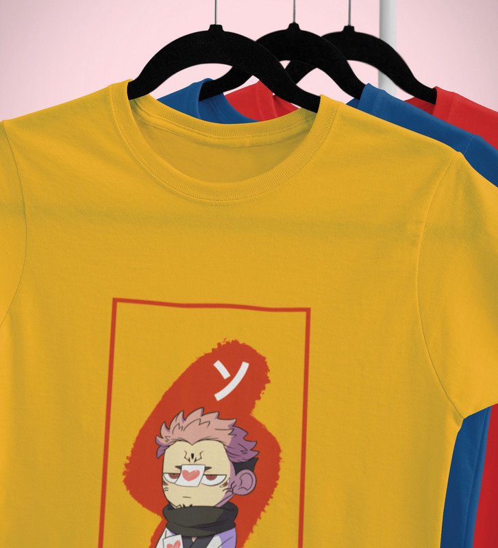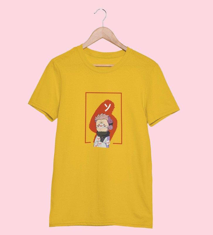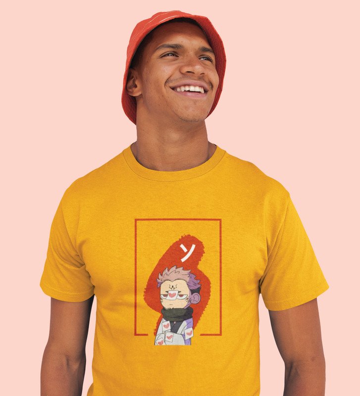 Anime Printed Cotton Yellow Tshirt For Mens and Boys