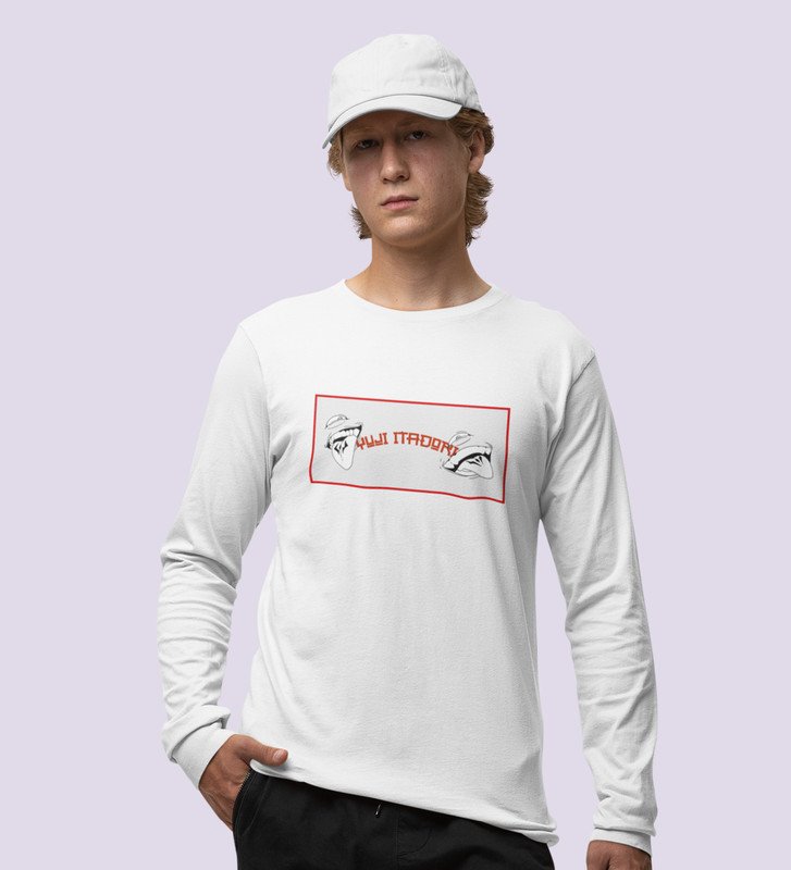 Anime Printed Itadori Cotton White Full Sleeves Tshirt For Mens and Boys