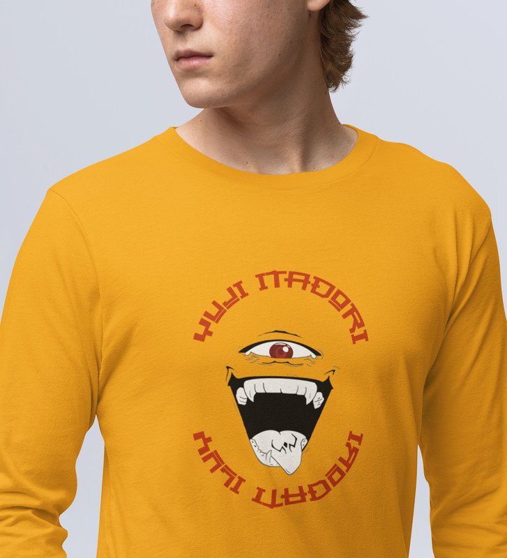Anime Printed Itadori Cotton Yellow Full Sleeves Tshirt For Mens and Boys