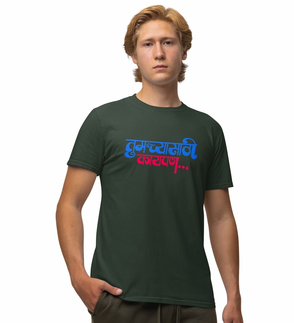 Anything For You Green Round Neck Cotton Half Sleeved Mens T Shirt with Printed Graphics