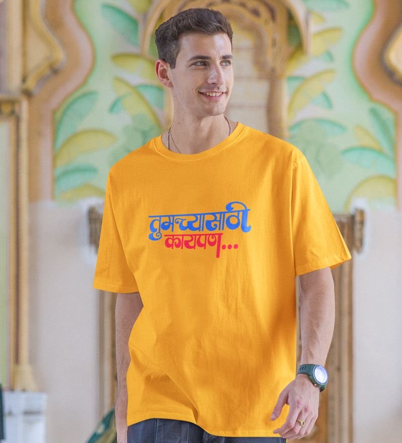 Anything For You Yellow Round Neck Cotton Half Sleeved Mens T Shirt with Printed Graphics