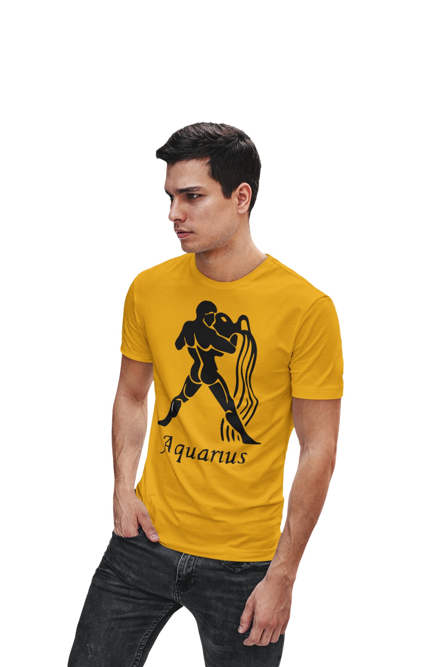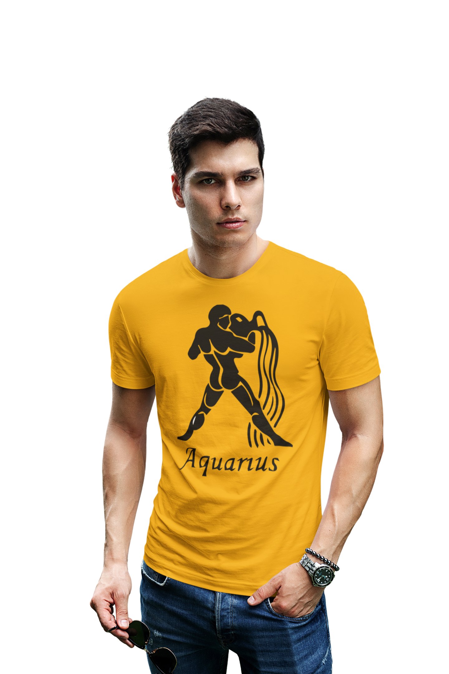 Aquarius (BG Black) (Yellow T) - Printed Zodiac Sign Tshirts - Made especially for astrology lovers people