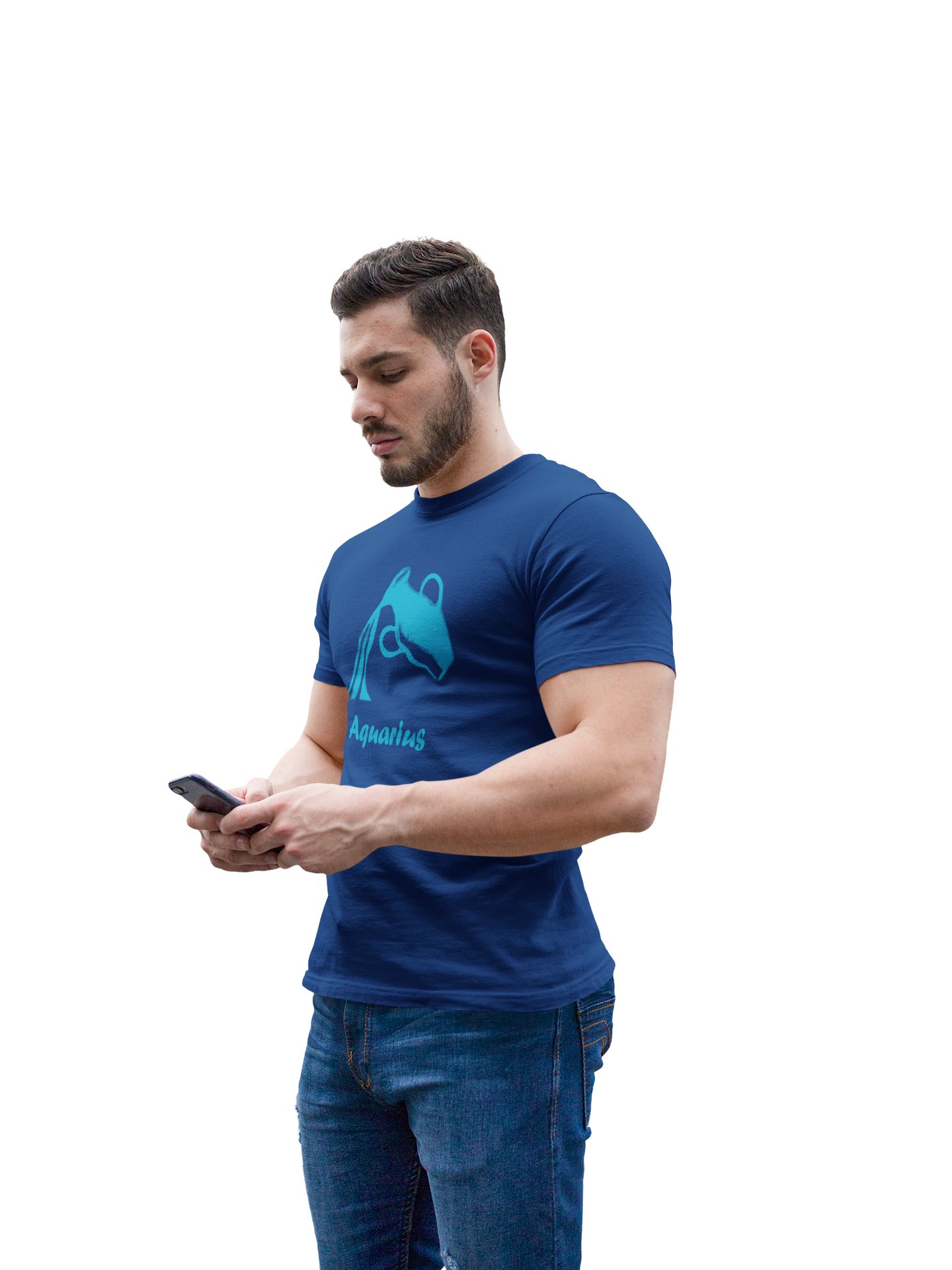 Aquarius (BG Blue)(Blue T) - Printed Zodiac Sign Tshirts - Made especially for astrology lovers people