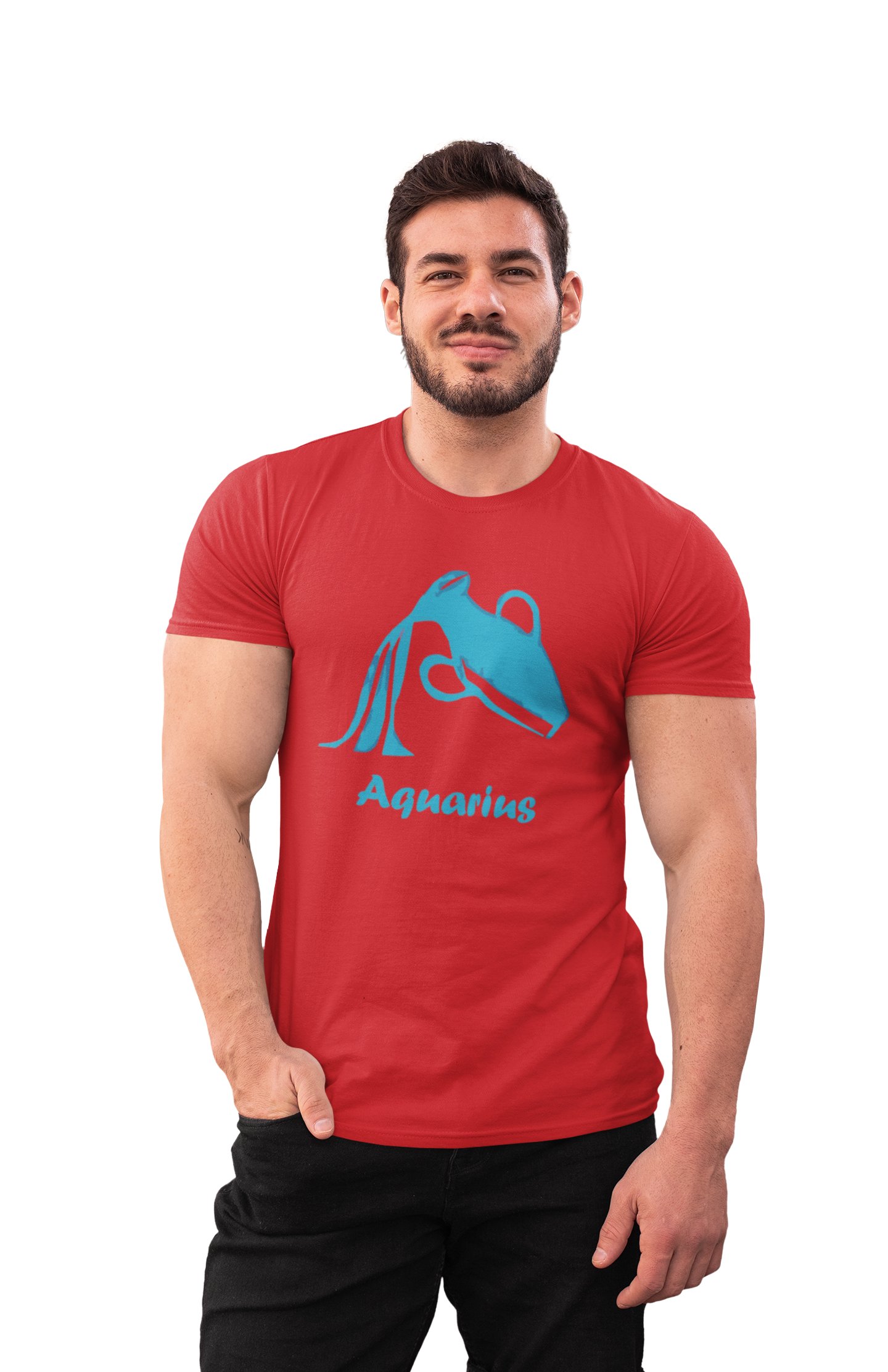 Aquarius (BG sky blue) (Red T) - Printed Zodiac Sign Tshirts - Made especially for astrology lovers people