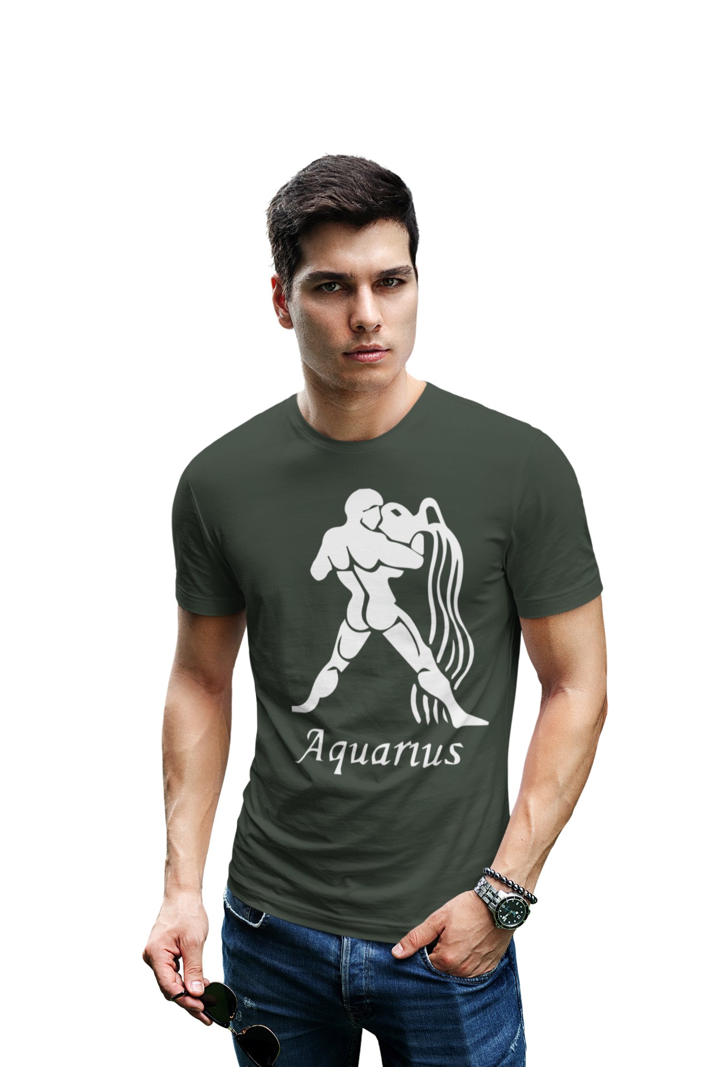 Aquarius (BG White) (Green T) - Printed Zodiac Sign Tshirts - Made especially for astrology lovers people