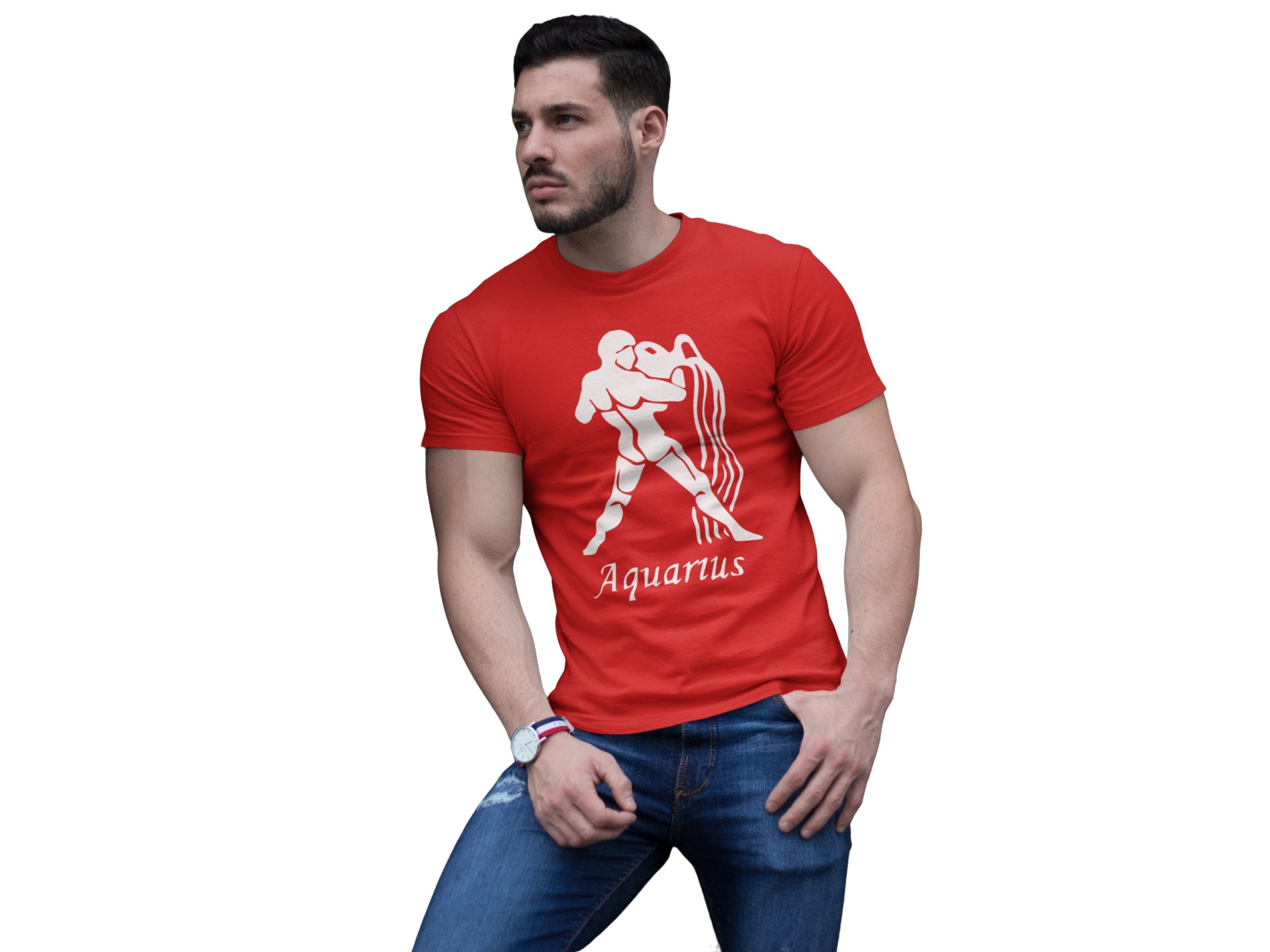 Aquarius (BG white) (Red T) - Printed Zodiac Sign Tshirts - Made especially for astrology lovers people