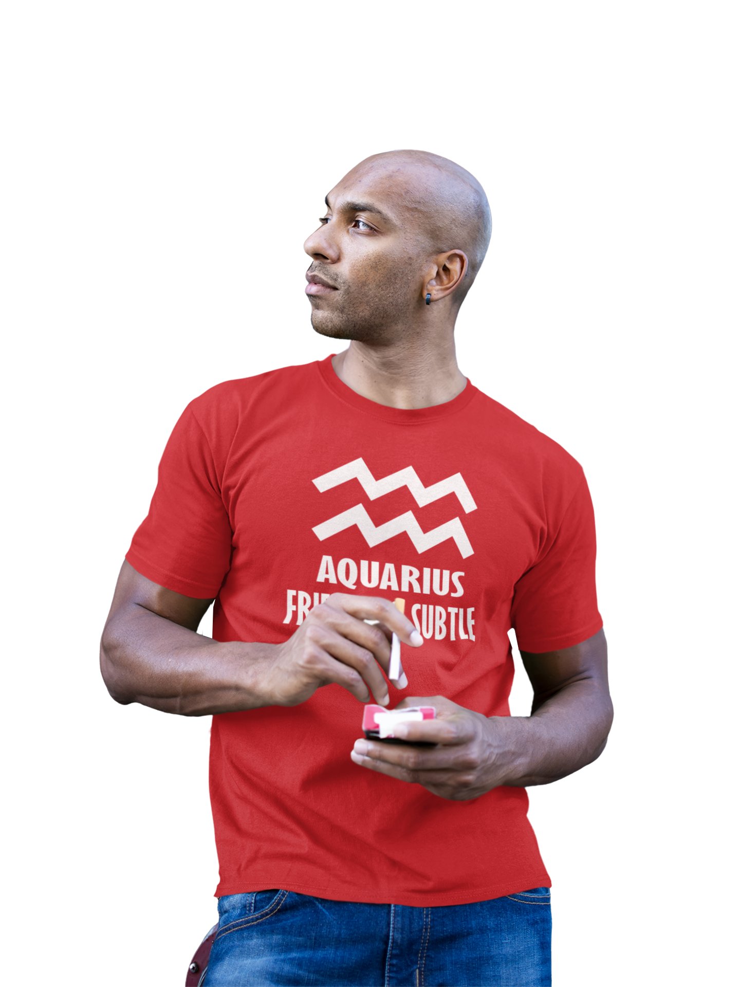 Aquarius, friendly and subtle (Red T) - Printed Zodiac Sign Tshirts - Made especially for astrology lovers people