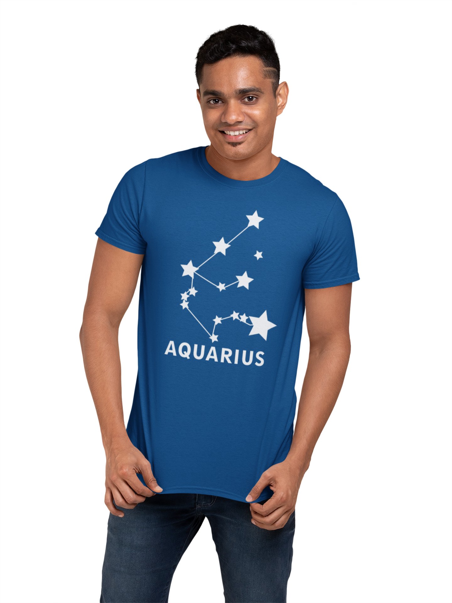 Aquarius stars (BG White)(Blue T) - Printed Zodiac Sign Tshirts - Made especially for astrology lovers people
