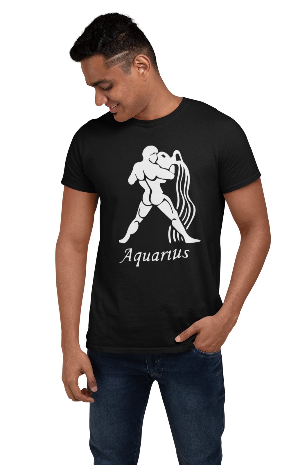 Aquarius symbol (BG white) - Printed Zodiac Sign Tshirts - Made especially for astrology lovers people