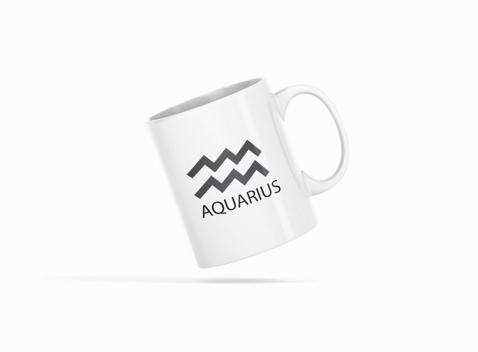 Aquarius - zodiac themed printed ceramic white coffee and tea mugs/ cups for astrology lovers