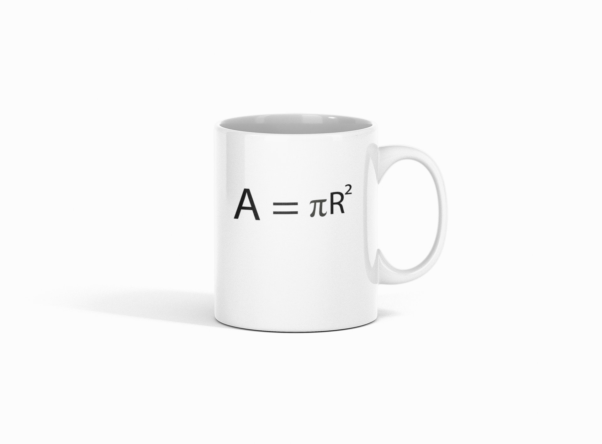 A=PieR2 - formula themed printed ceramic white coffee and tea mugs/ cups for maths lovers