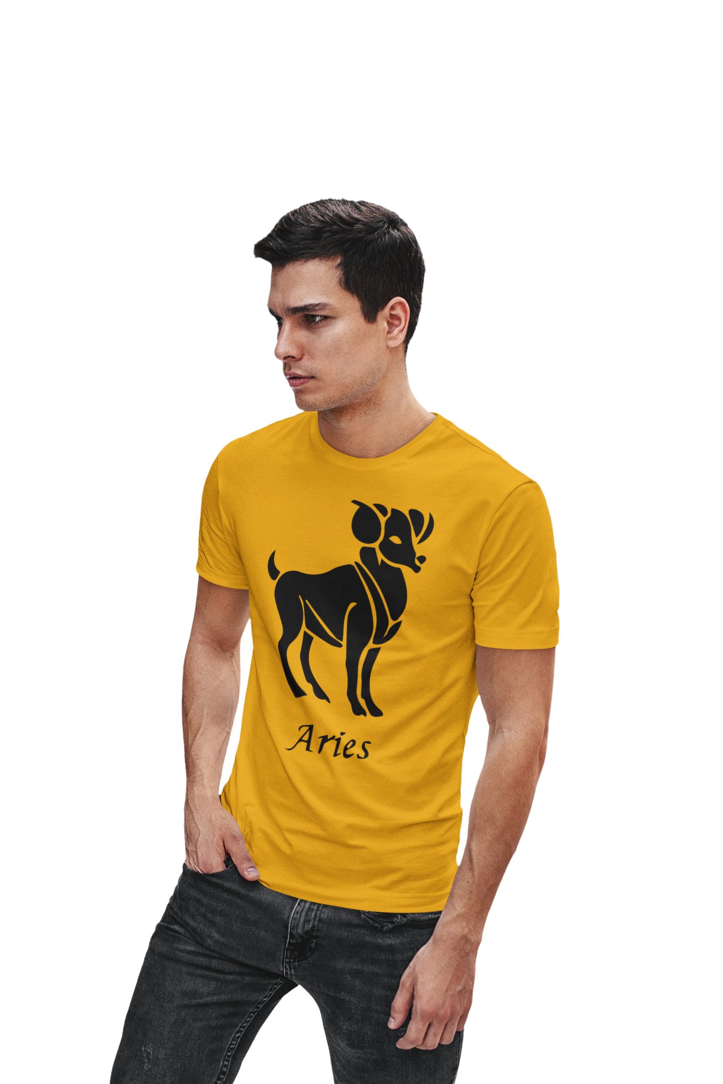 Aries (BG Black) (Yellow T) - Printed Zodiac Sign Tshirts - Made especially for astrology lovers people