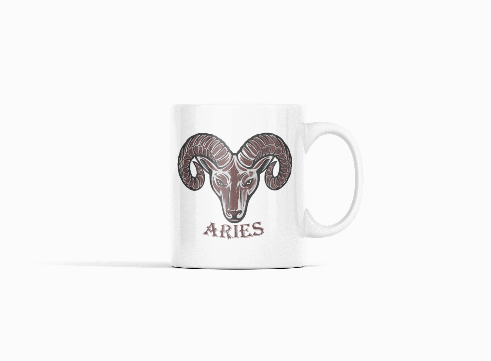 Aries, (BG Brown)- zodiac themed printed ceramic white coffee and tea mugs/ cups for astrology lovers