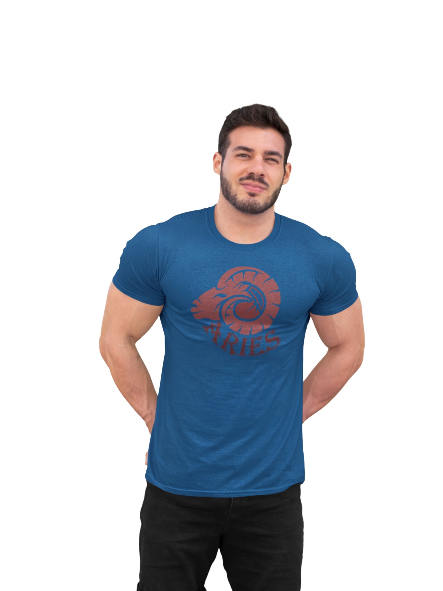 Aries (BG Brown)(Blue T) - Printed Zodiac Sign Tshirts - Made especially for astrology lovers people