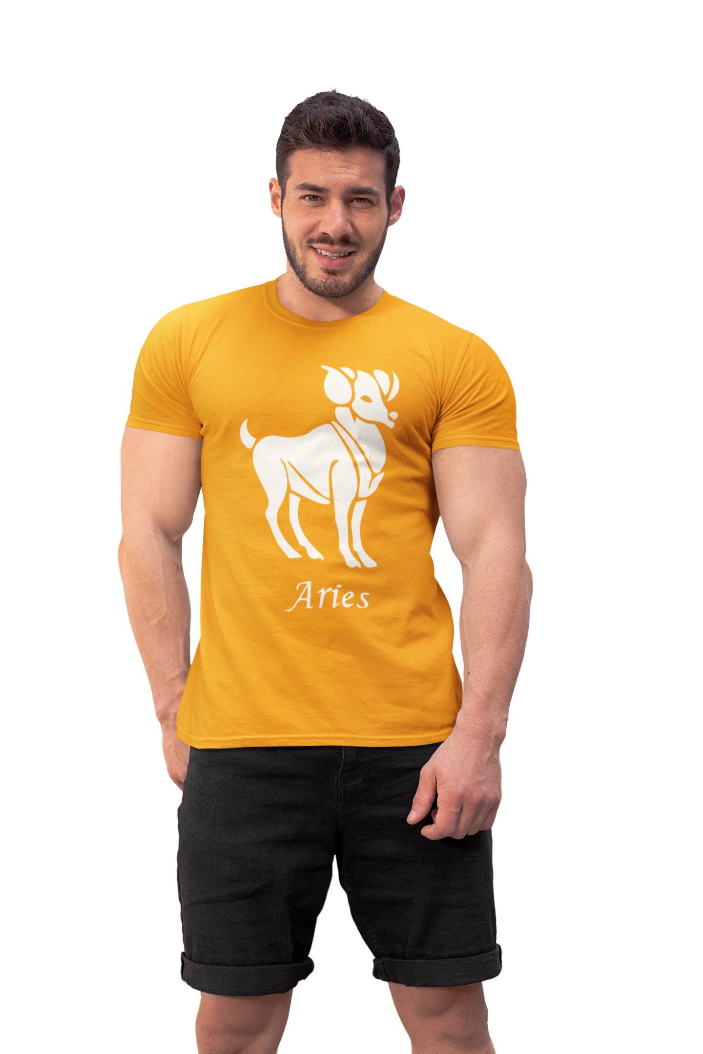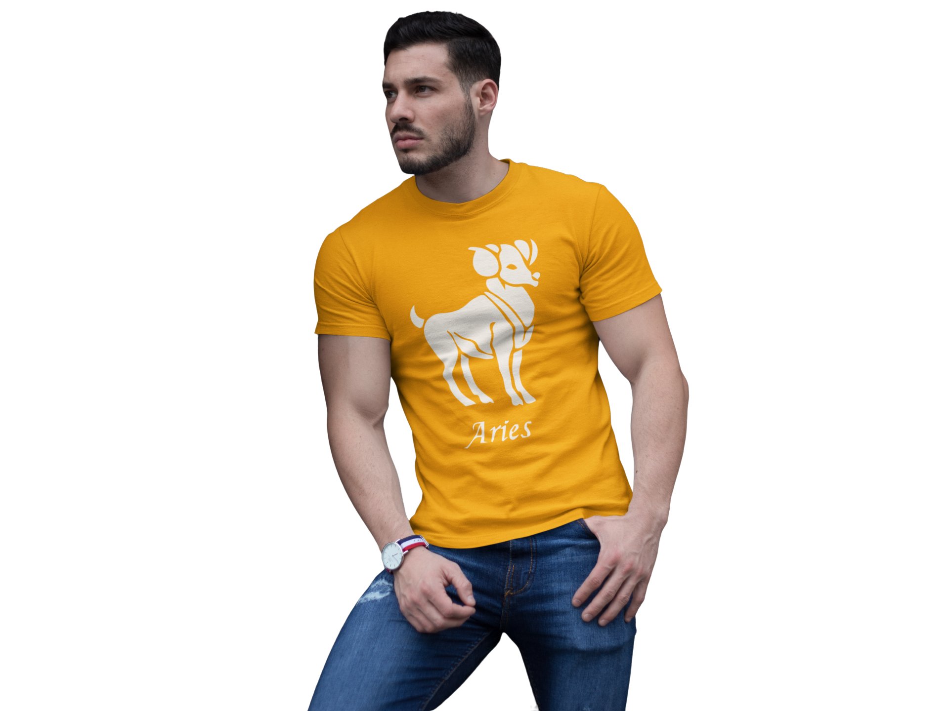 Aries (BG white) (Yellow T) - Printed Zodiac Sign Tshirts - Made especially for astrology lovers people