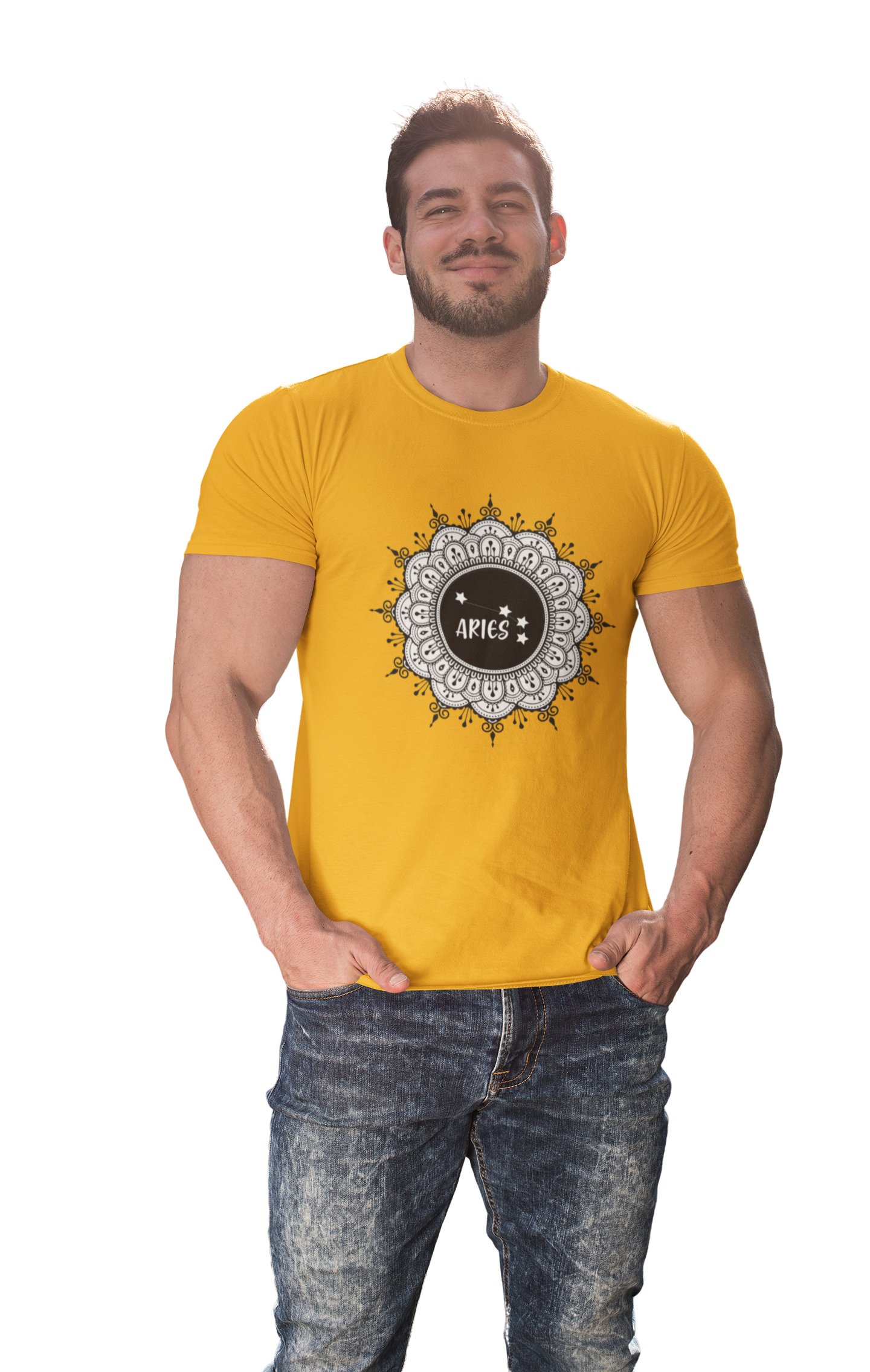 Aries mandala (Yellow T) - Printed Zodiac Sign Tshirts - Made especially for astrology lovers people