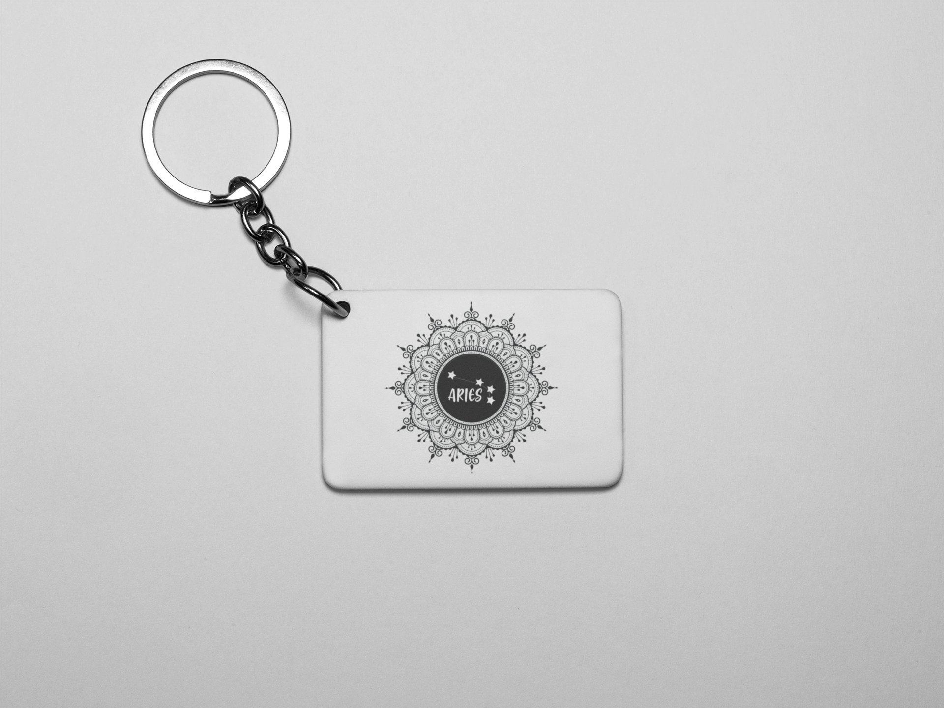 Aries mandala - Zodiac Sign Printed Keychains For Astrology Lovers(Pack of 2)