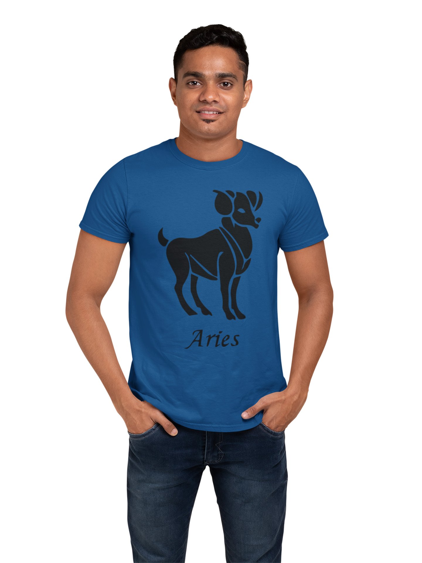 Aries symbol(Blue T) - Printed Zodiac Sign Tshirts - Made especially for astrology lovers people