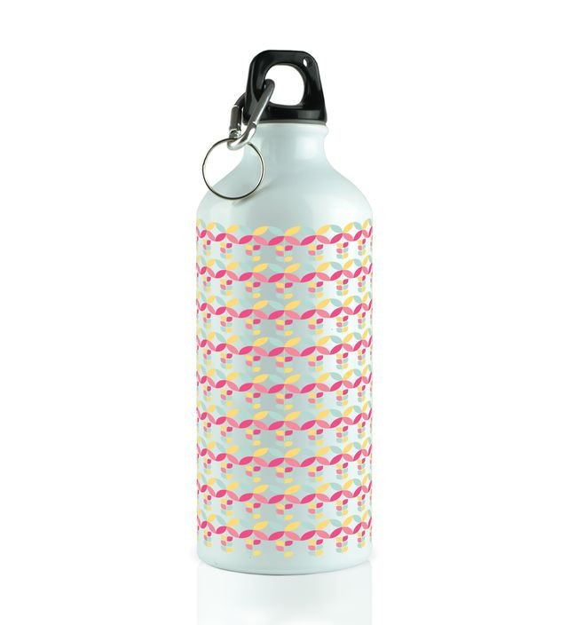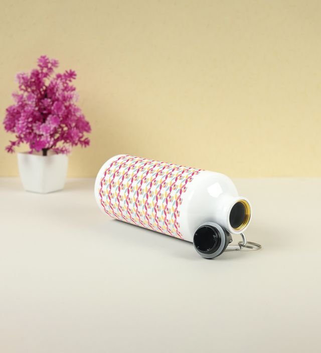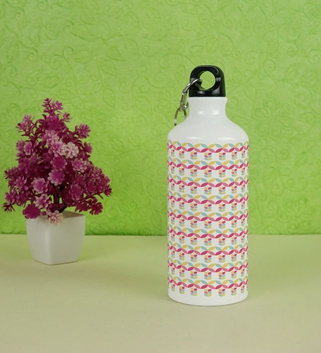 Artful Abstract Geometric Shapes and Colorful Flowers Printed Aluminium Water Bottle 600ml