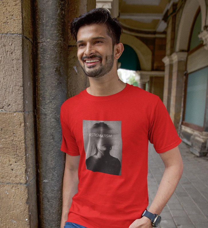 Astigmatism, Red Bold Impressions: Front Printed Men's Oversized Tee - City Style Defined