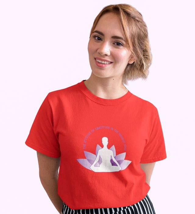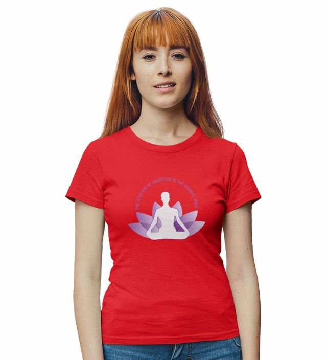 Attitude Of Gratitude Red Round Neck Cotton Half Sleeved Women T-Shirt with Printed Graphics