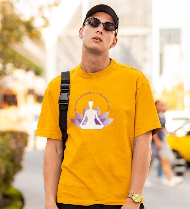 Attitude Of Gratitude Yellow Round Neck Cotton Half Sleeved Men T-Shirt with Printed Graphics