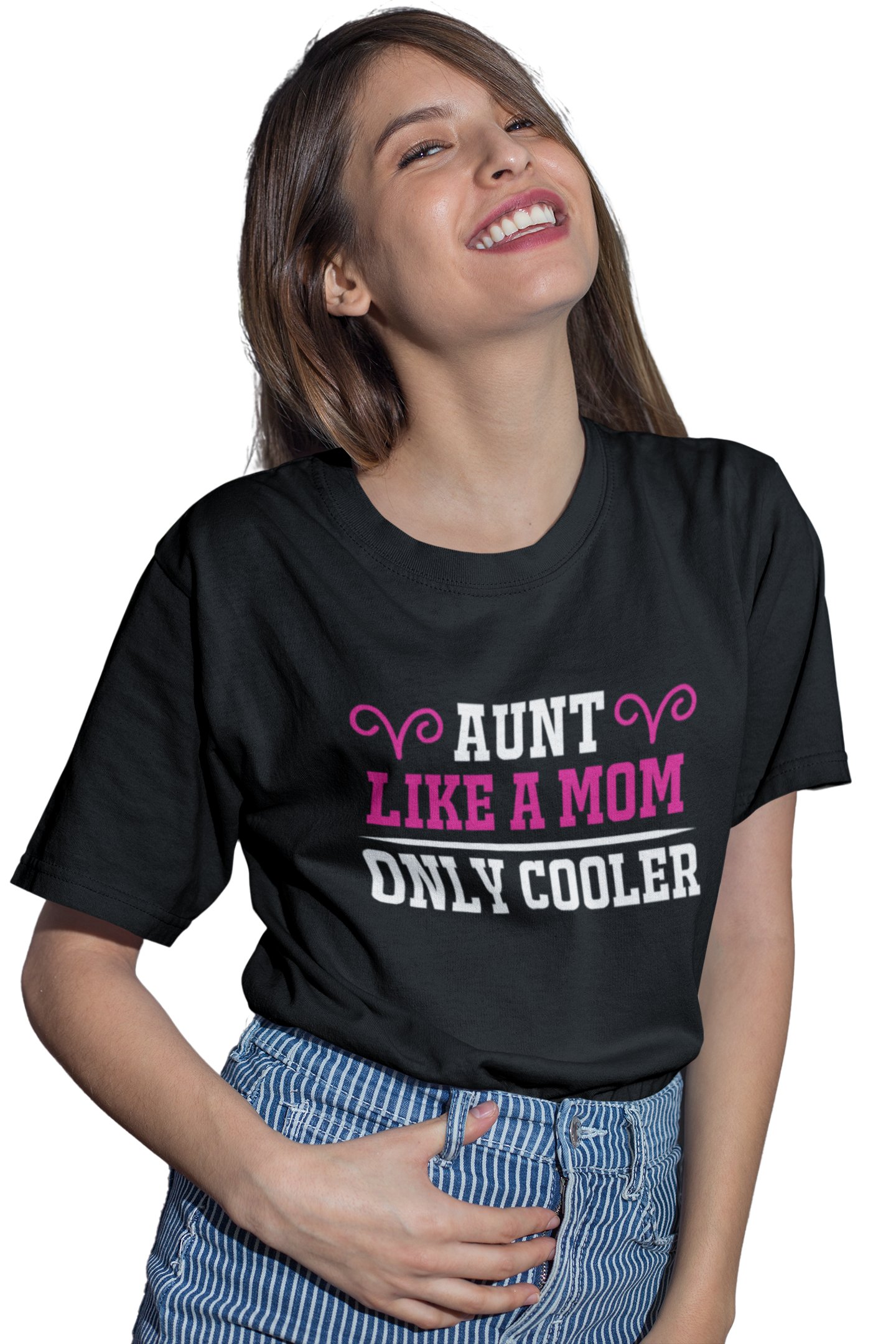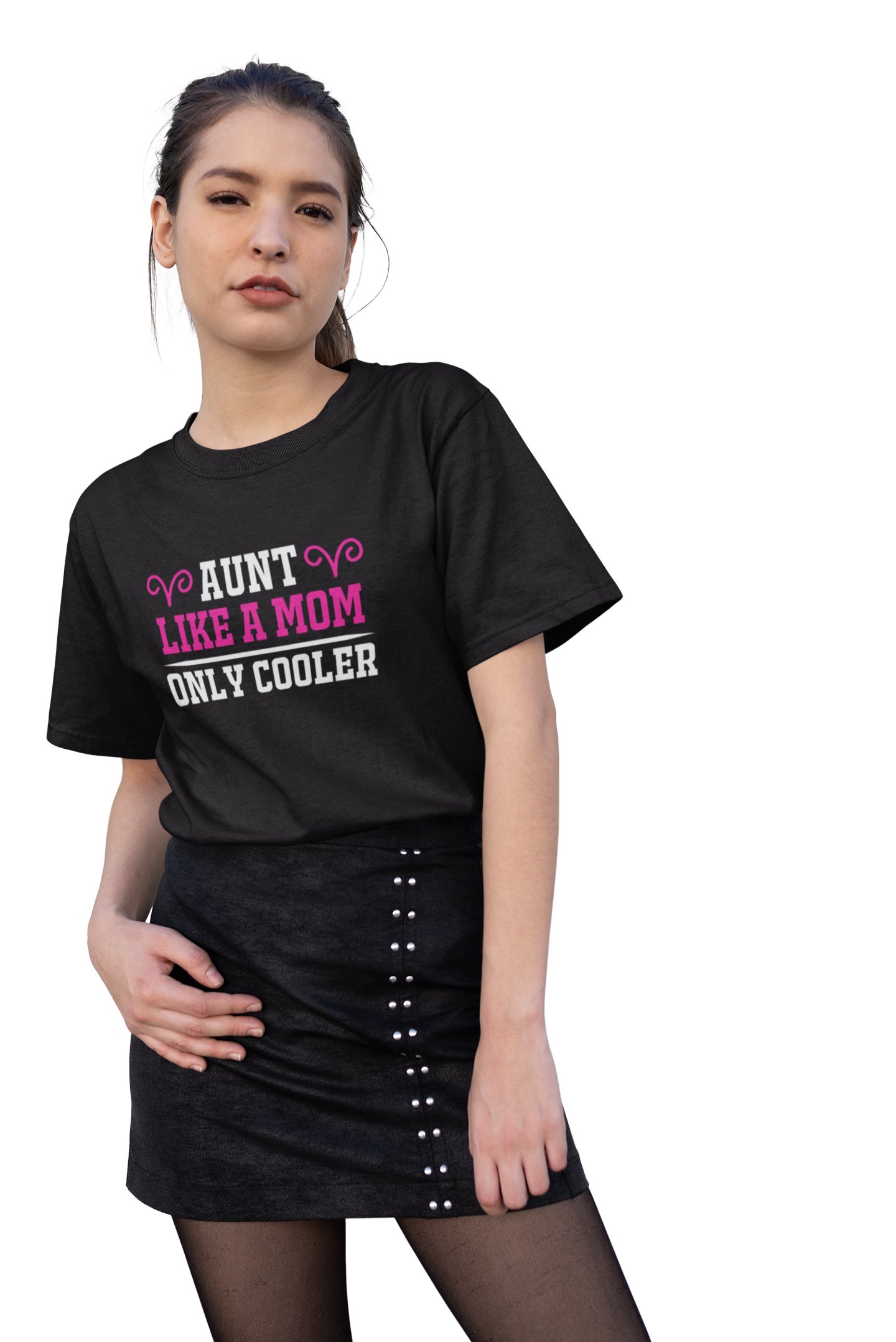 Aunt like a Mom -printed family themed cotton blended half-sleeve t-shirts made for women (black)
