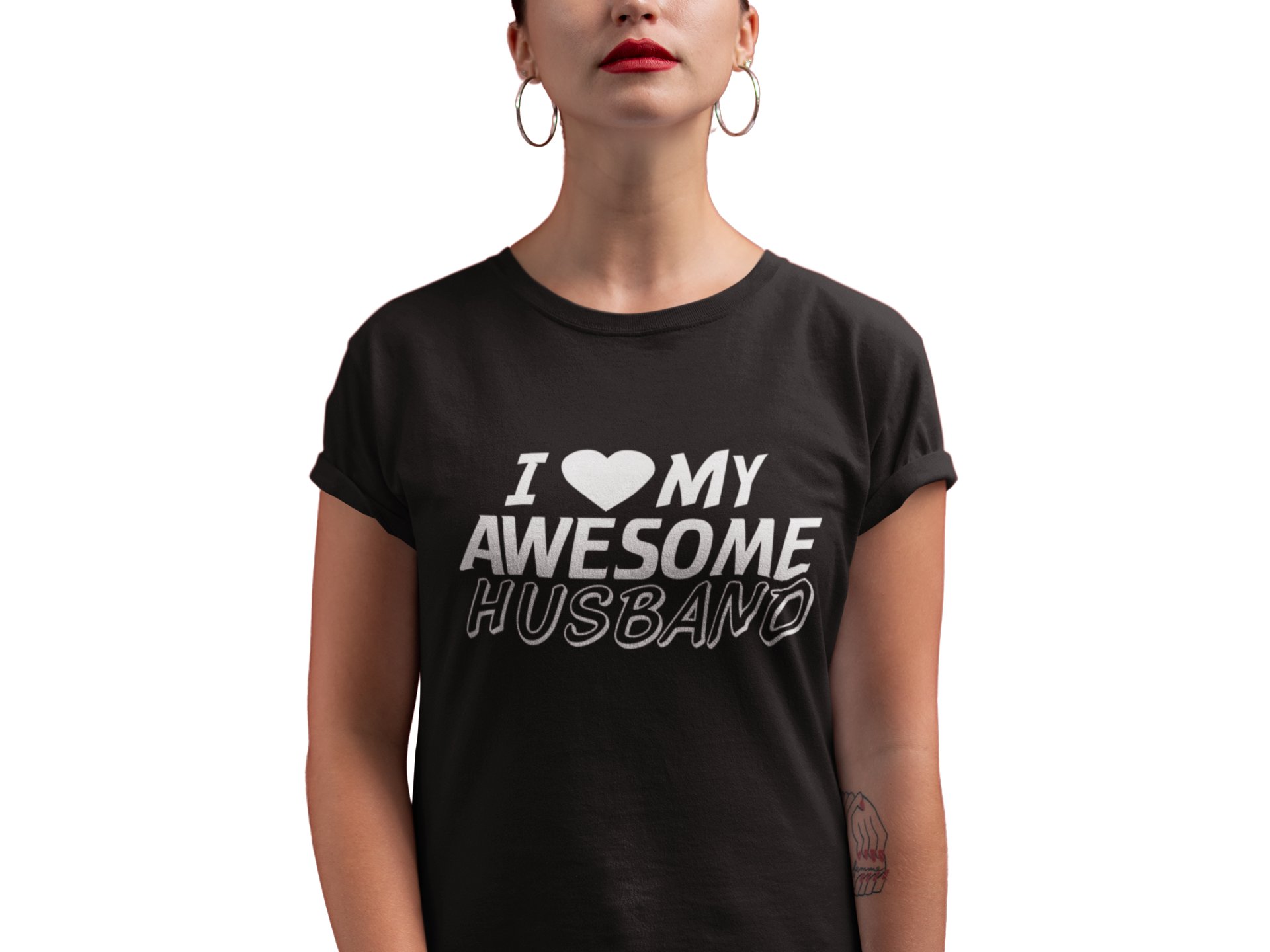Awesome husband-printed family themed cotton blended half-sleeve t-shirts made for women (black)