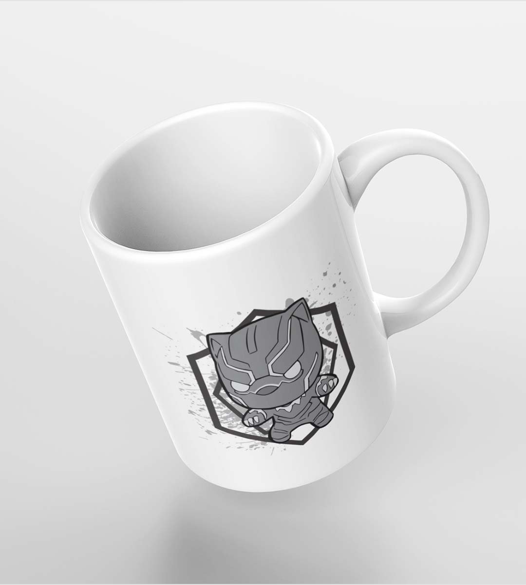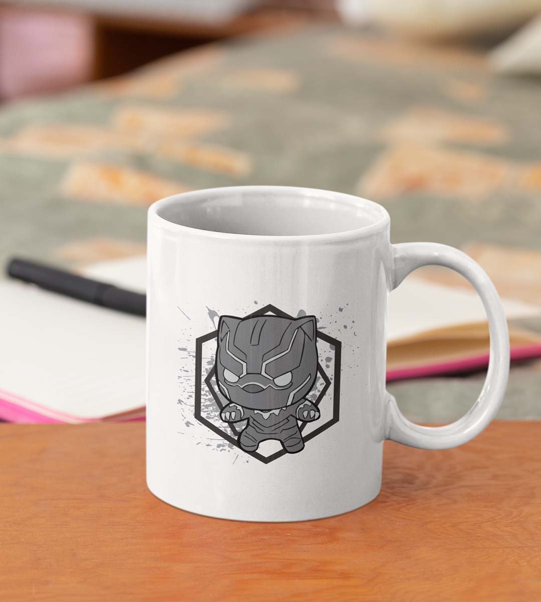 Tinyblack panther - animation themed printed ceramic white coffee and tea mugs/ cups for animation lovers