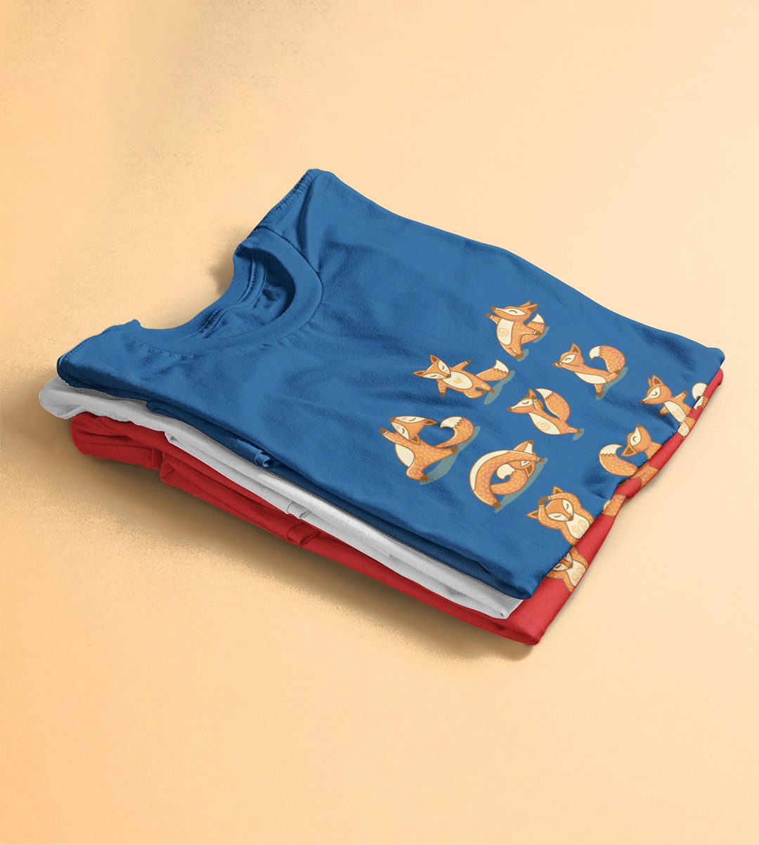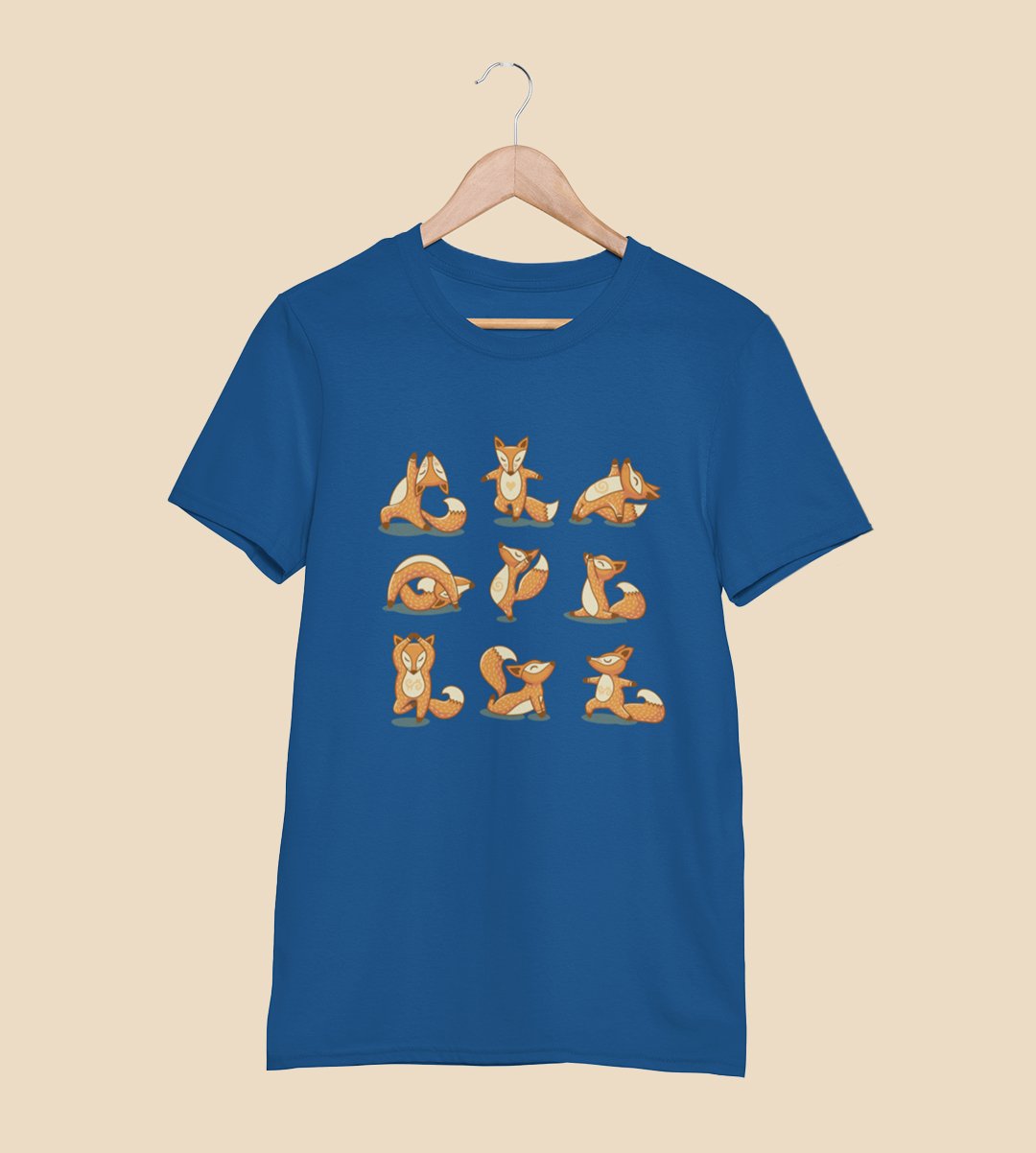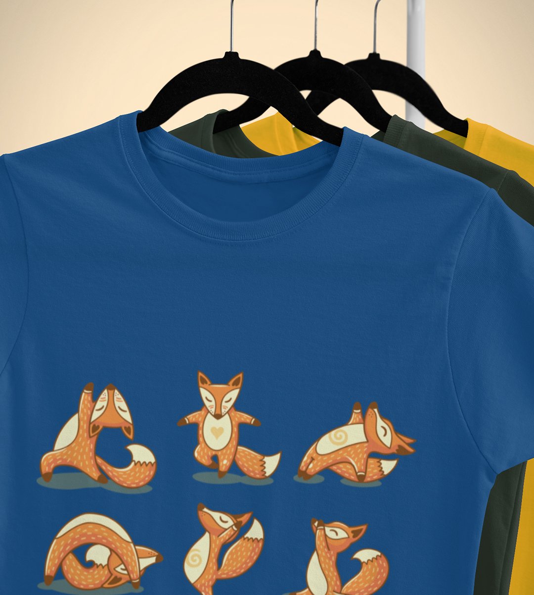 Baby fox doing yoga -printed round crew neck cotton tshirts for men