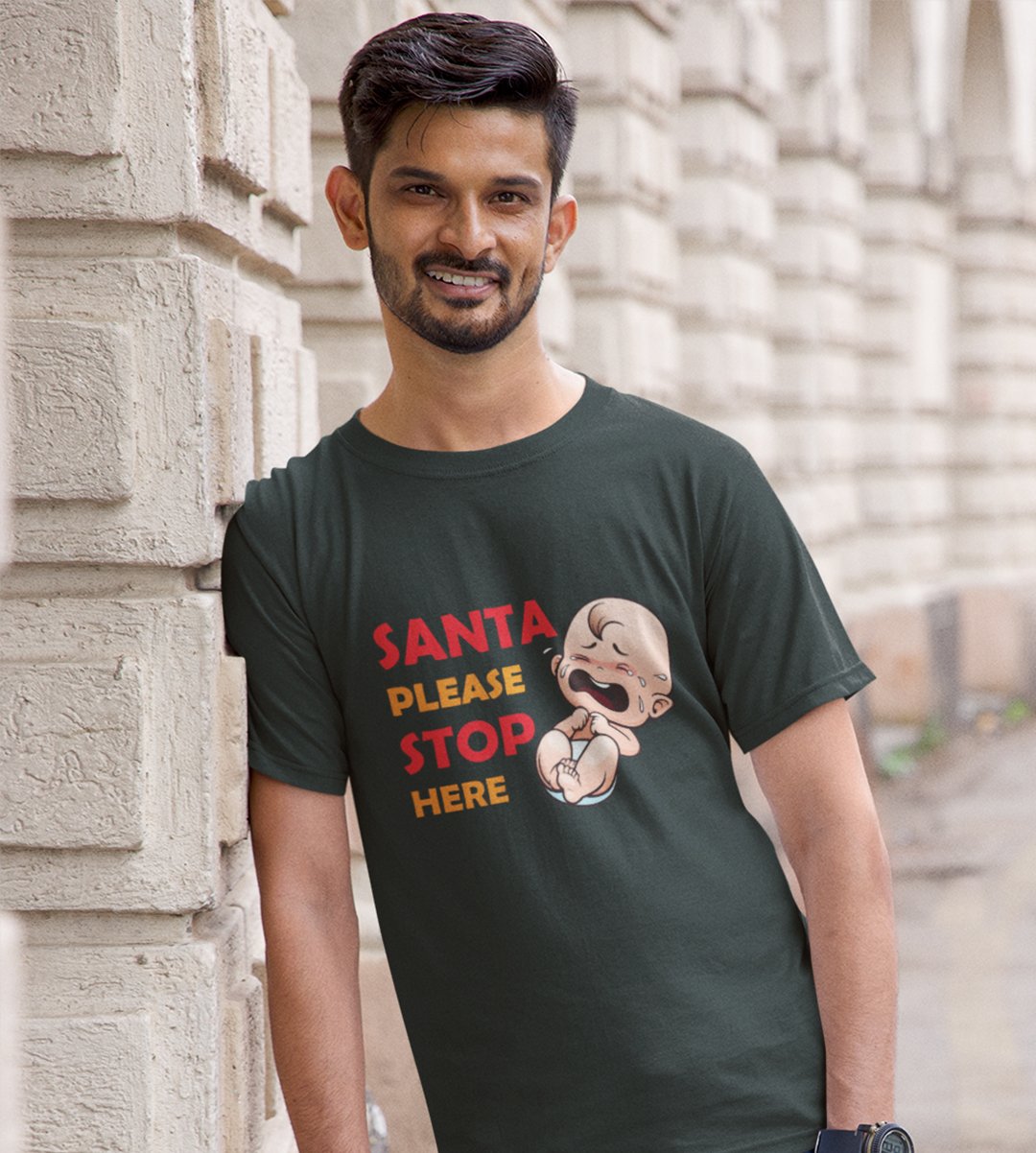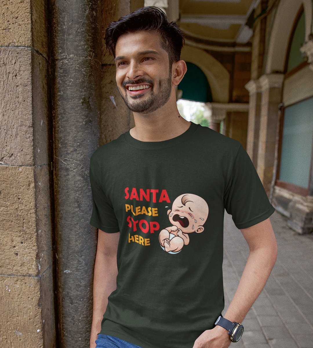 Baby Tears Over Santa(Green) Elegantly Printed T-shirt, Best Gift For Boys Girls