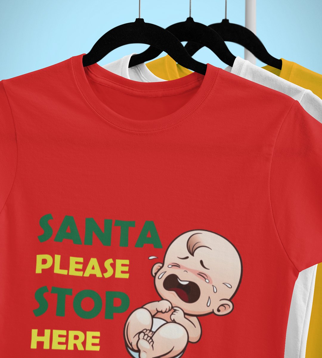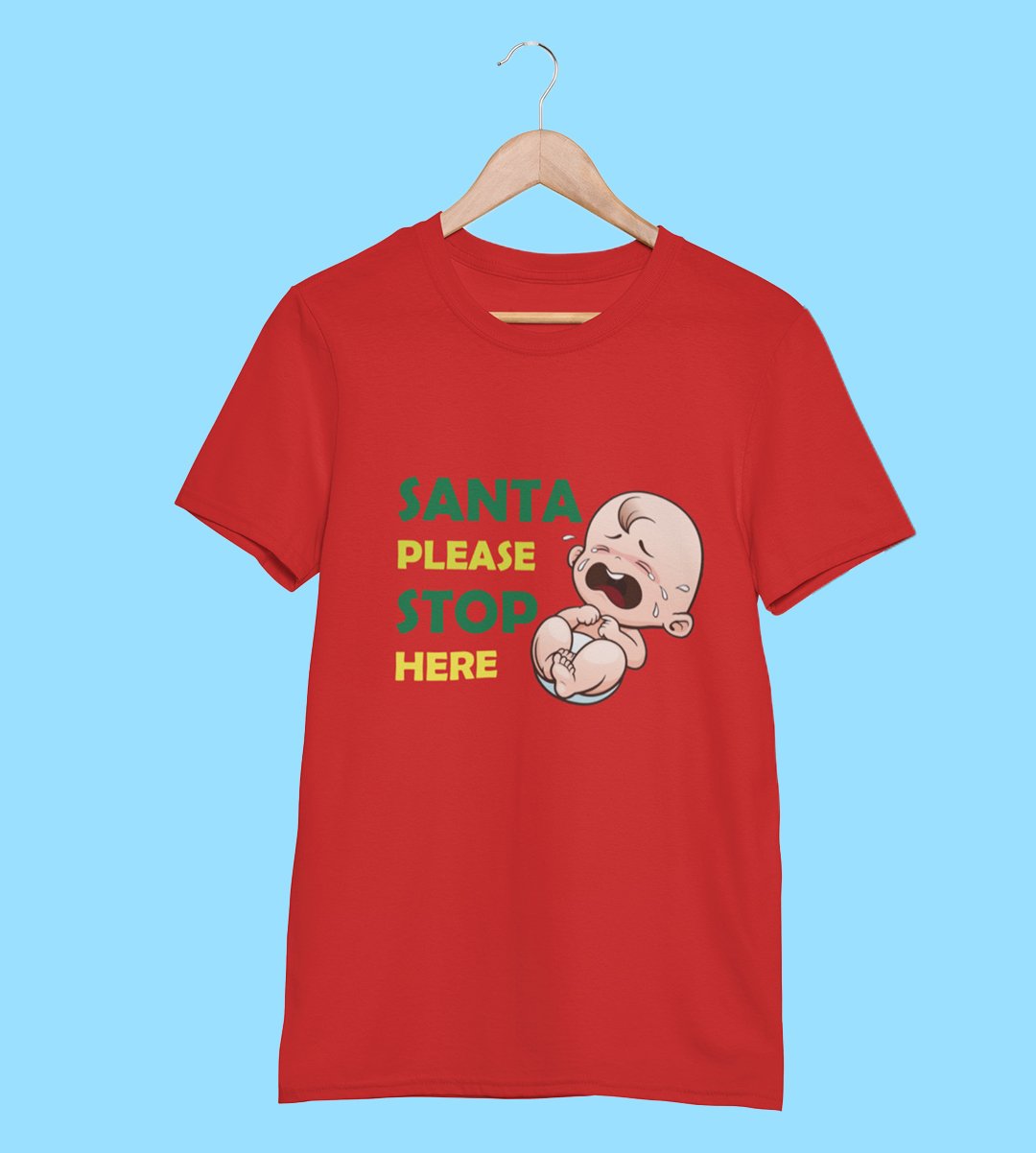 Baby Tears Over Santa(Red) Elegantly Printed T-shirt, Best Gift For Boys Girls
