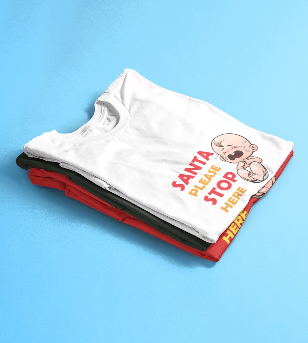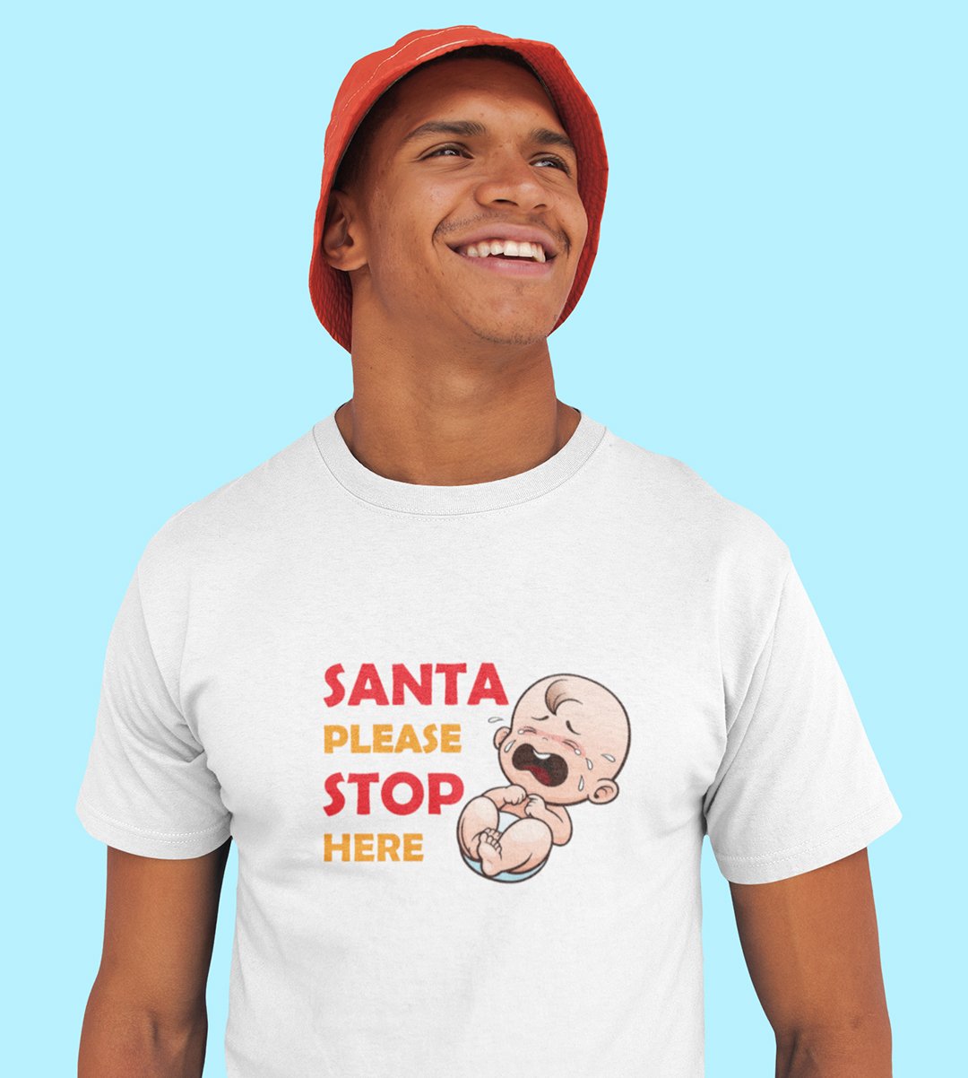 Baby Tears Over Santa(White) Elegantly Printed T-shirt, Best Gift For Boys Girls